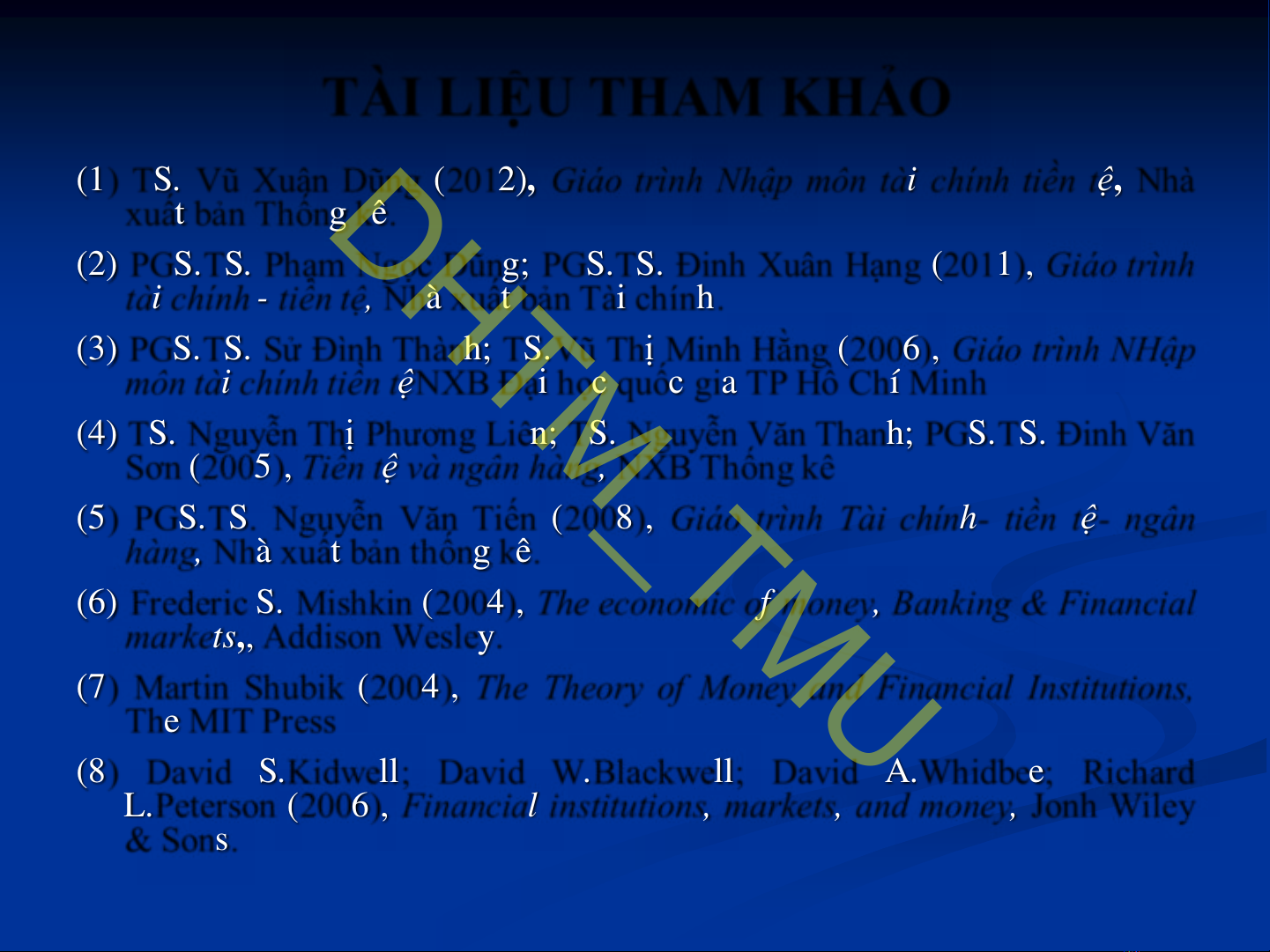 (1) TS.Vũ Xuân Dũng (2012),Giáo trình Nhập môn tài chính tiền tệ,Nhà