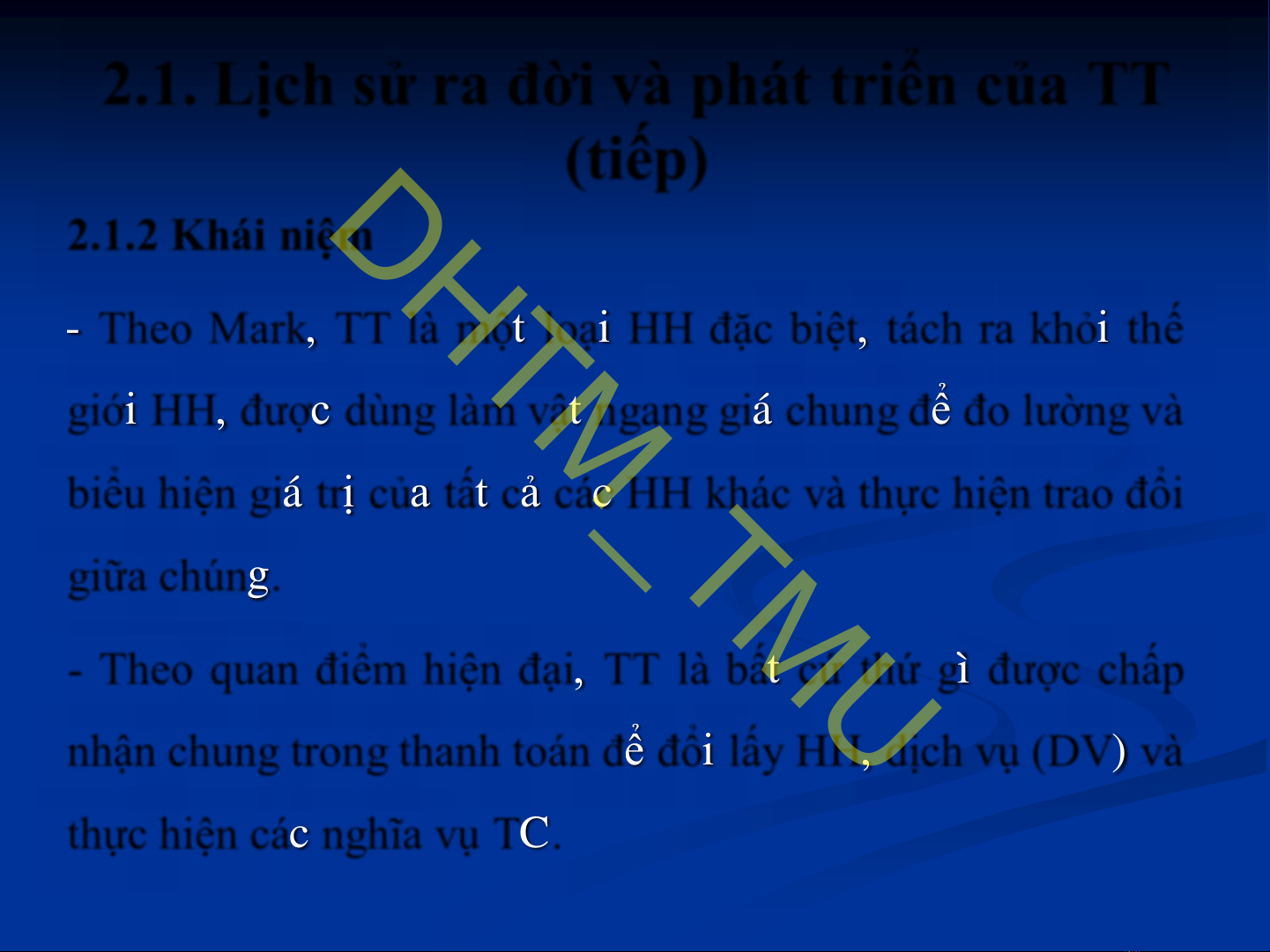 - Khái niệm:HH đóng vai trò là tiền tệ.