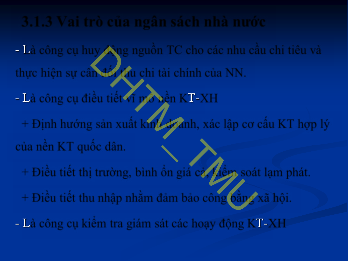 3.1 Những vấn đề chung về NSNN (tiếp)