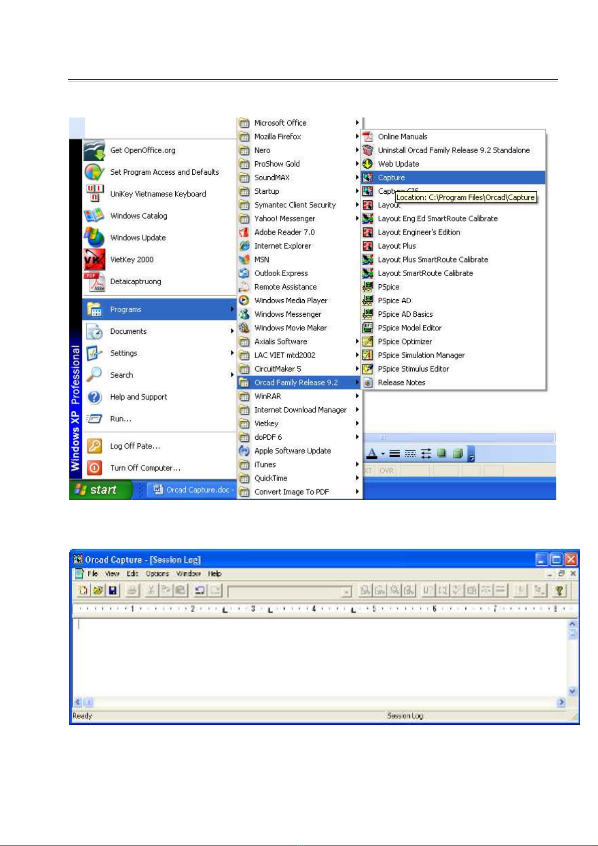 Start→ Programs→ Orcad Family Release 9.2→ Capture