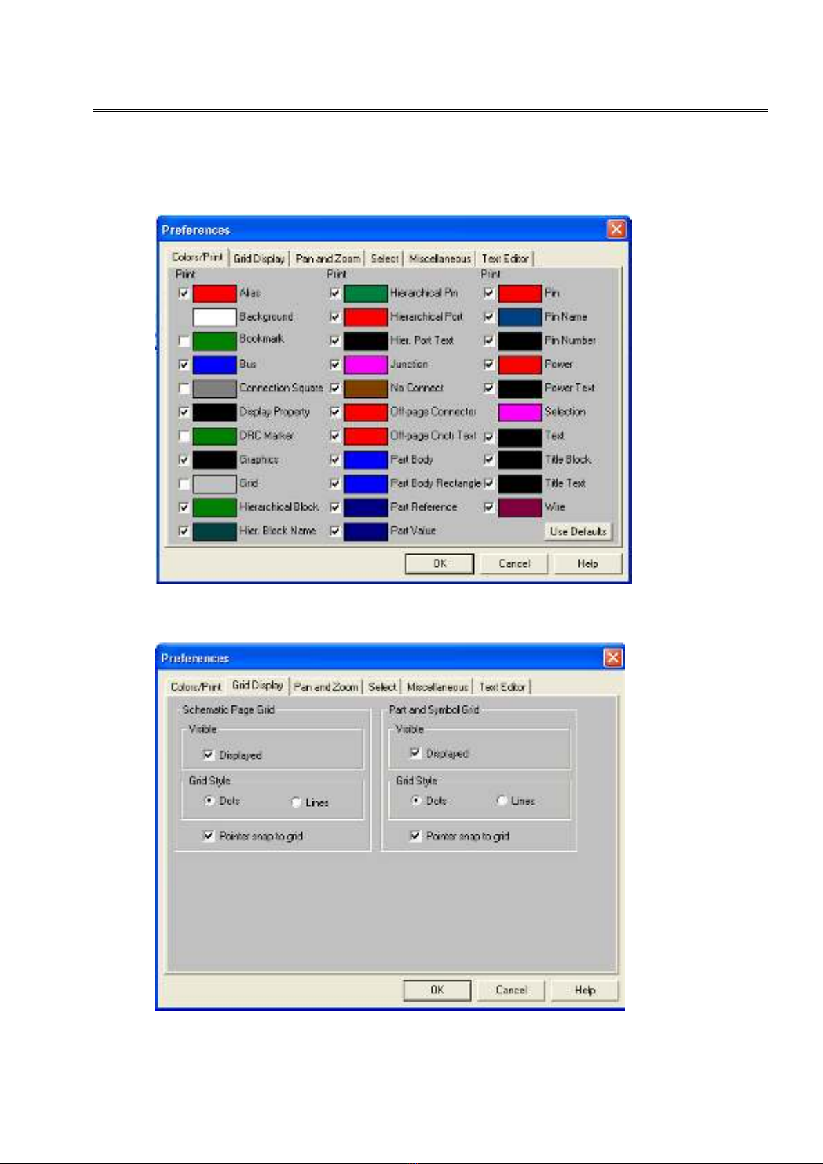 1.1. Tab Color/Print: Chọn gam màu cho từng đối tượng trong trang sơ đồ mạch nguyên lý