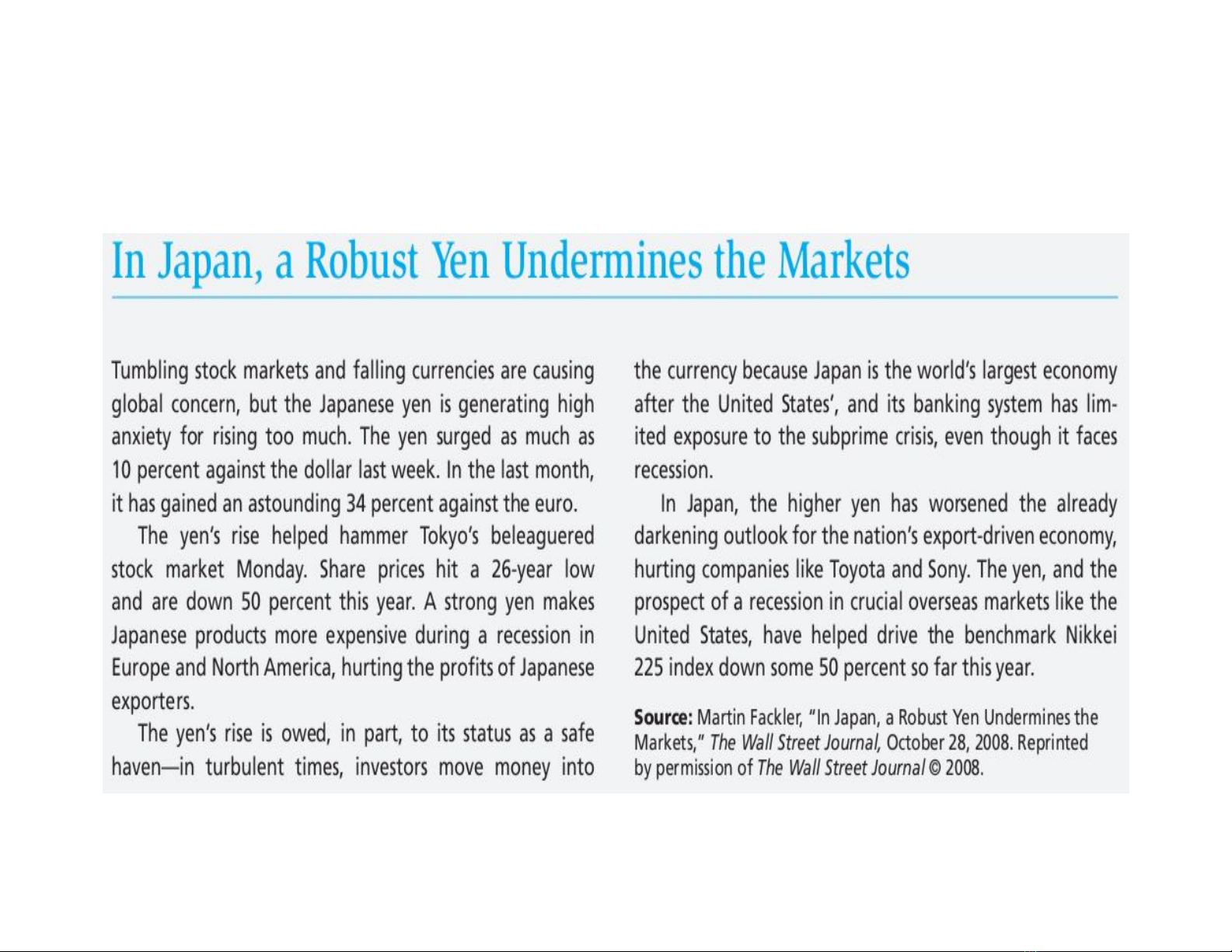 Tỷ giá hối đoái: vd sự tăng giá đồng Yen năm 2008