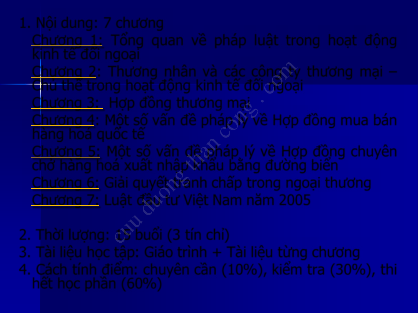 4. Cách tính điểm: chuyên cần (10%), kiểm tra (30%), thi