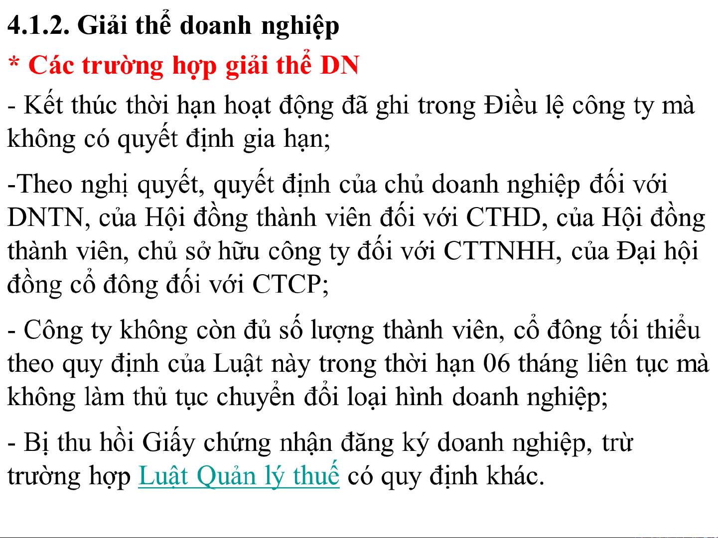 Tài liệu này cung cấp một cái nhìn toàn diện về khuôn khổ pháp luật điều chỉnh việc giải thể và phá sản của doanh nghiệp và hợp tác xã tại Việt Nam. Phần đầu tiên tập trung vào pháp luật về giải thể doanh nghiệp và hợp tác xã, làm rõ khái niệm, đặc điểm cũng như các trường hợp dẫn đến giải thể, từ kết thúc thời hạn hoạt động đến việc bị thu hồi giấy chứng nhận đăng ký doanh nghiệp. Các điều kiện cần thiết để thực hiện giải thể, cùng với các hành vi bị cấm và trình tự ưu tiên thanh toán nợ theo Luật Doanh nghiệp 2020, được trình bày chi tiết. Đối với hợp tác xã, tài liệu cũng phân loại giải thể tự nguyện và bắt buộc, kèm theo các điều kiện và hành vi bị cấm tương tự. Phần tiếp theo của tài liệu chuyên sâu về phá sản doanh nghiệp và hợp tác xã, khởi đầu bằng khái quát về phá sản như một tình trạng mất khả năng thanh toán được Tòa án tuyên bố, cùng với đối tượng áp dụng và vai trò của pháp luật phá sản trong việc bảo vệ quyền lợi chủ nợ, người lao động và tạo động lực cạnh tranh. Tài liệu mô tả rõ các nội dung chủ yếu của pháp luật phá sản, bao gồm quy định về nộp đơn, thụ lý yêu cầu, mở thủ tục phá sản, hội nghị chủ nợ, phục hồi hoạt động kinh doanh, và quy trình tuyên bố, thi hành quyết định phá sản. Đặc biệt, nó nêu bật các chủ thể có quyền và nghĩa vụ nộp đơn yêu cầu mở thủ tục phá sản. Bằng cách phân tích các quy định từ Luật Doanh nghiệp 2020 và Luật Phá sản 2014, cùng các sửa đổi dự kiến, tài liệu này mang lại giá trị thực tiễn cao, giúp các nhà quản lý, chủ doanh nghiệp, thành viên hợp tác xã và các chuyên gia pháp lý nắm vững quy trình phức tạp này để đảm bảo tuân thủ pháp luật và bảo vệ lợi ích hợp pháp của mình.