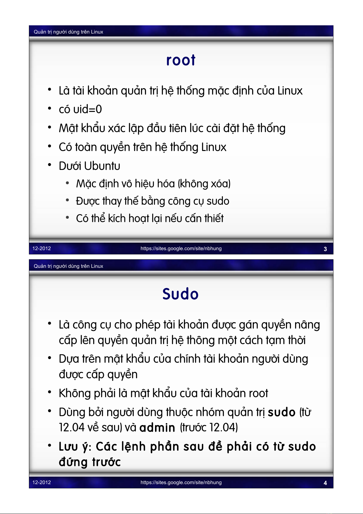 •Là tài khoản quản trị hệ thống mặc định của Linux