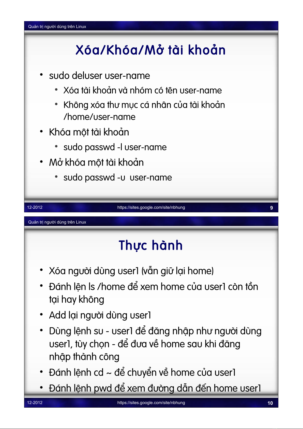 •Xóa người dùng user1 (vẫn giữ lại home)
