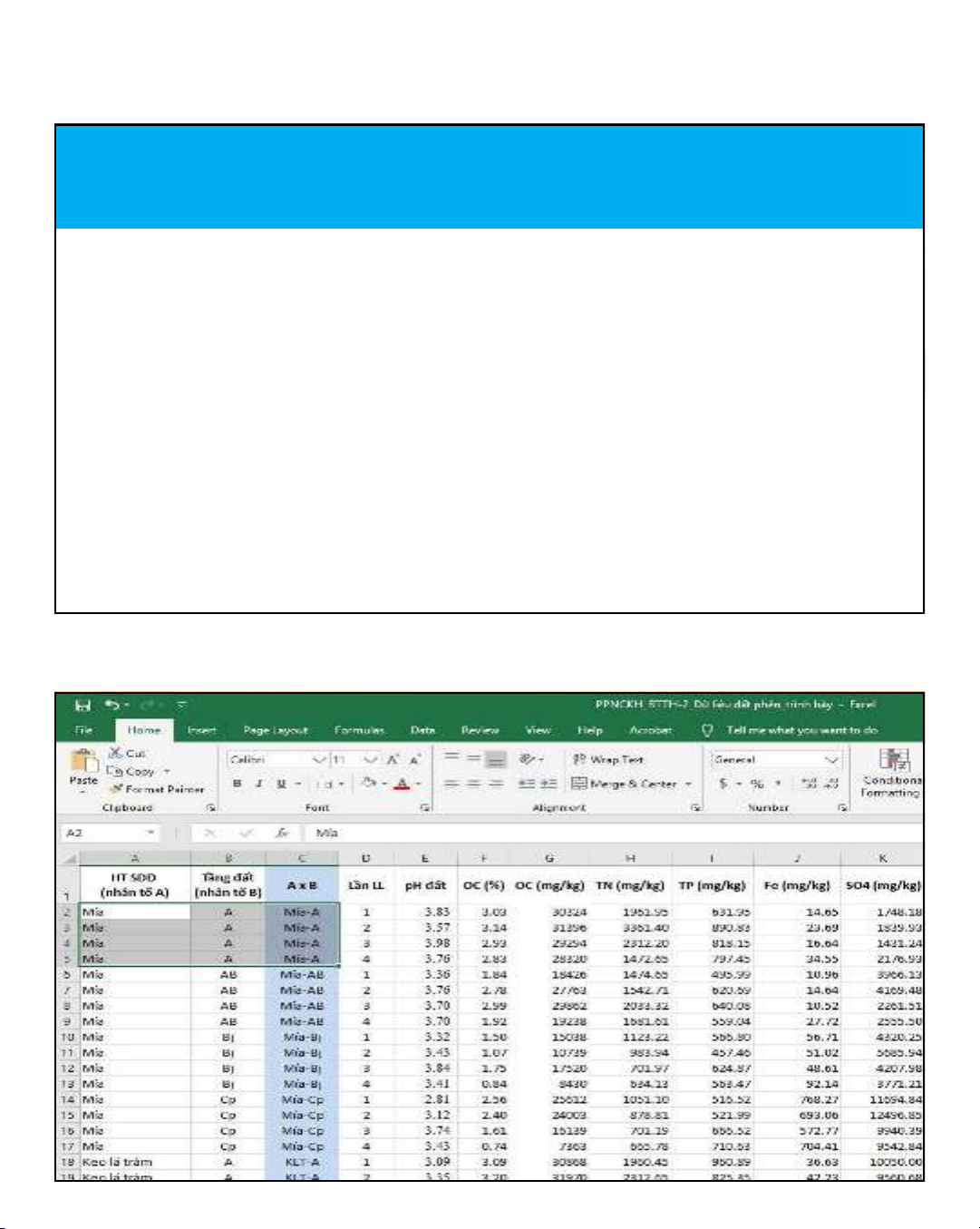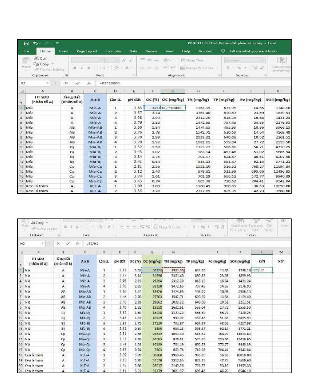 (loi cây-nhân tô A) va tng đt (đô sâu tng đt-nhân tô B) đn nng đô ca Fe, SO4, t lê C/N