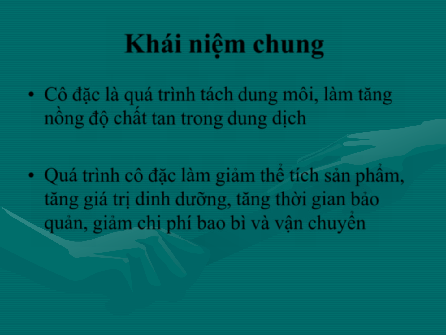 •Cô đặc là quá trình tách dung môi, làm tăng