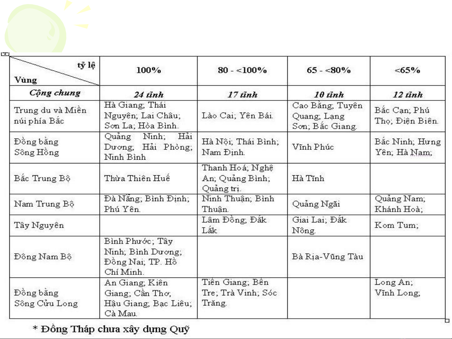 d ng đc Qu chi m 83%ự ượ ỹ ế so v i t ng s xã, ớ ổ ố