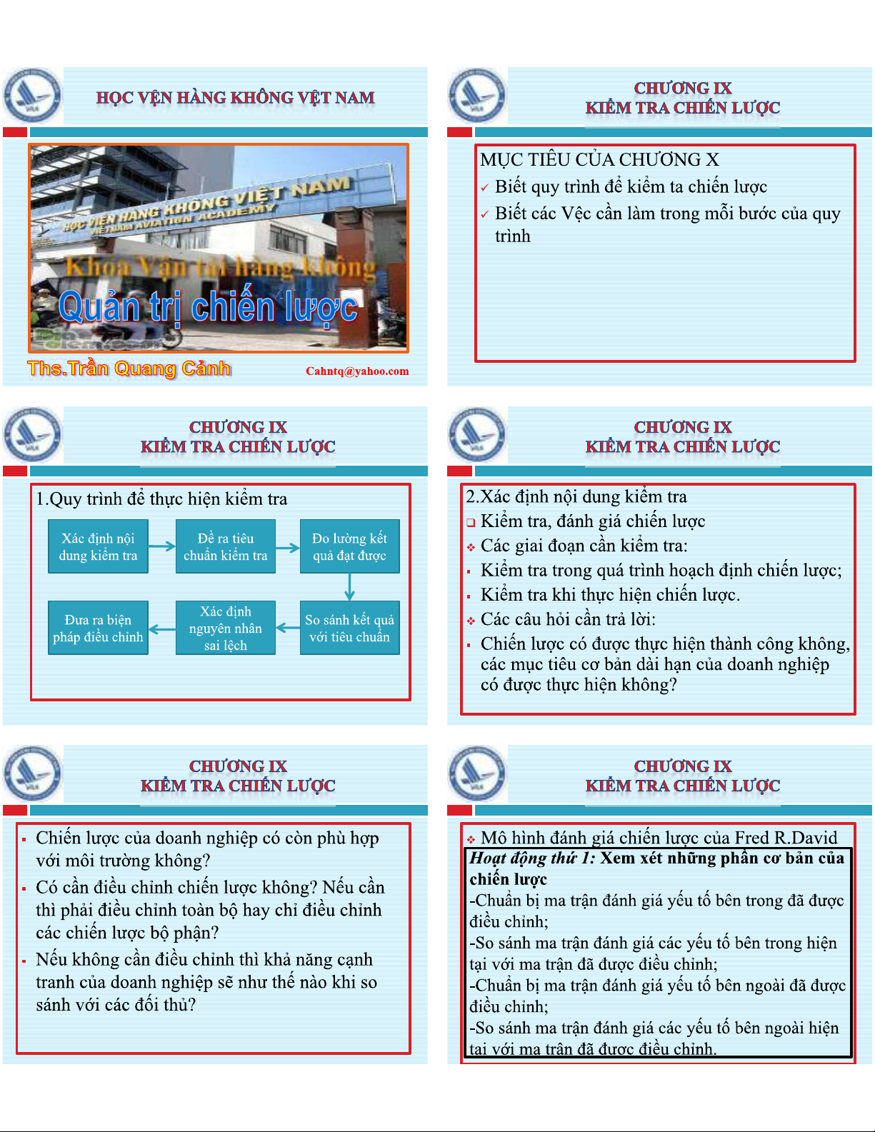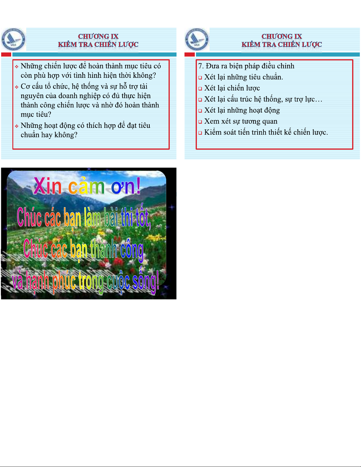 Bài giảng "Quản trị chiến lược - Chương 13: Kiểm tra chiến lược" cung cấp các kiến thức giúp người học hiểu được quy trình kiểm tra chiến lược, biết các việc cần làm trong mỗi bước của chương trình. Mời các bạn cùng tham khảo nội dung chi tiết.
