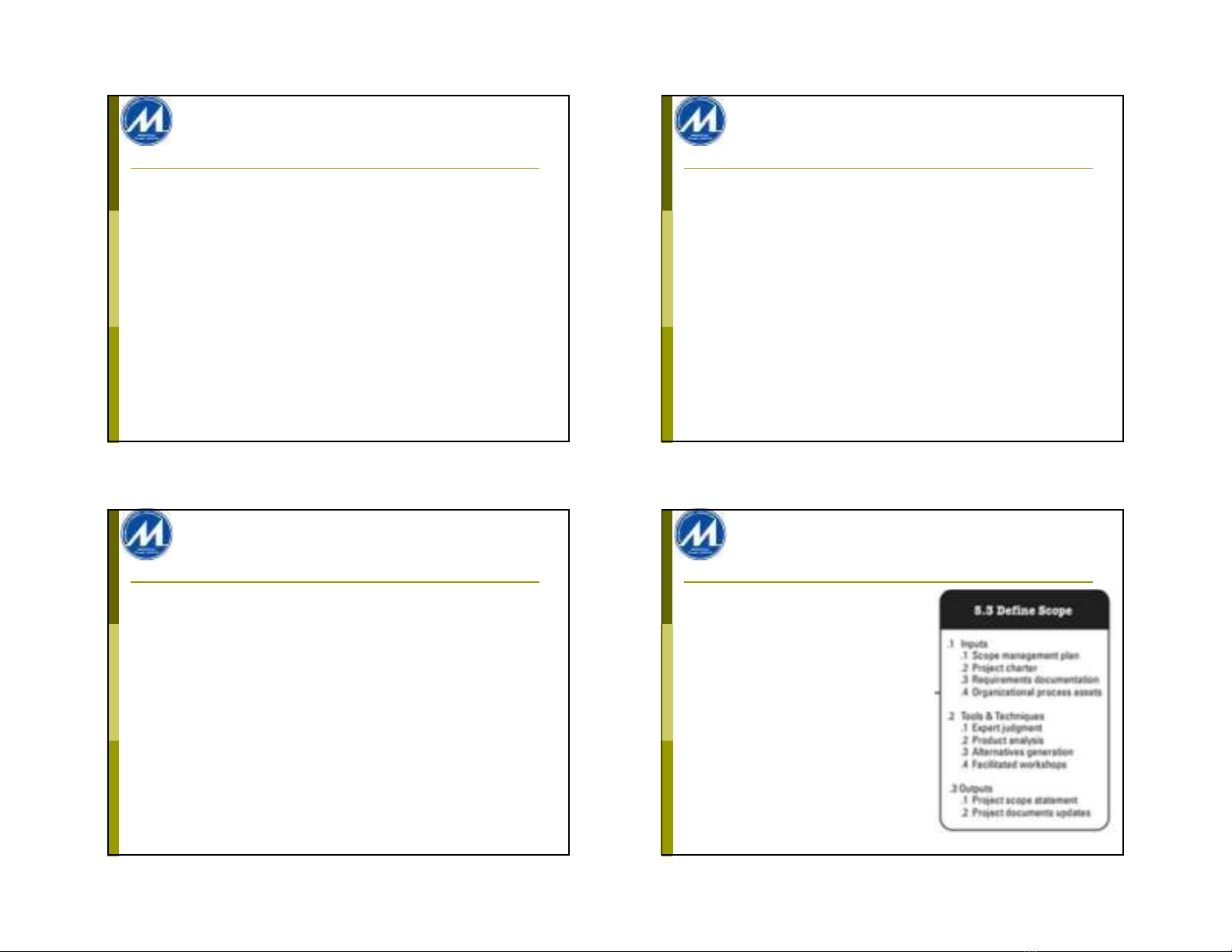 xác định và quản lý quy mô dự án bao gồm quy mô sản