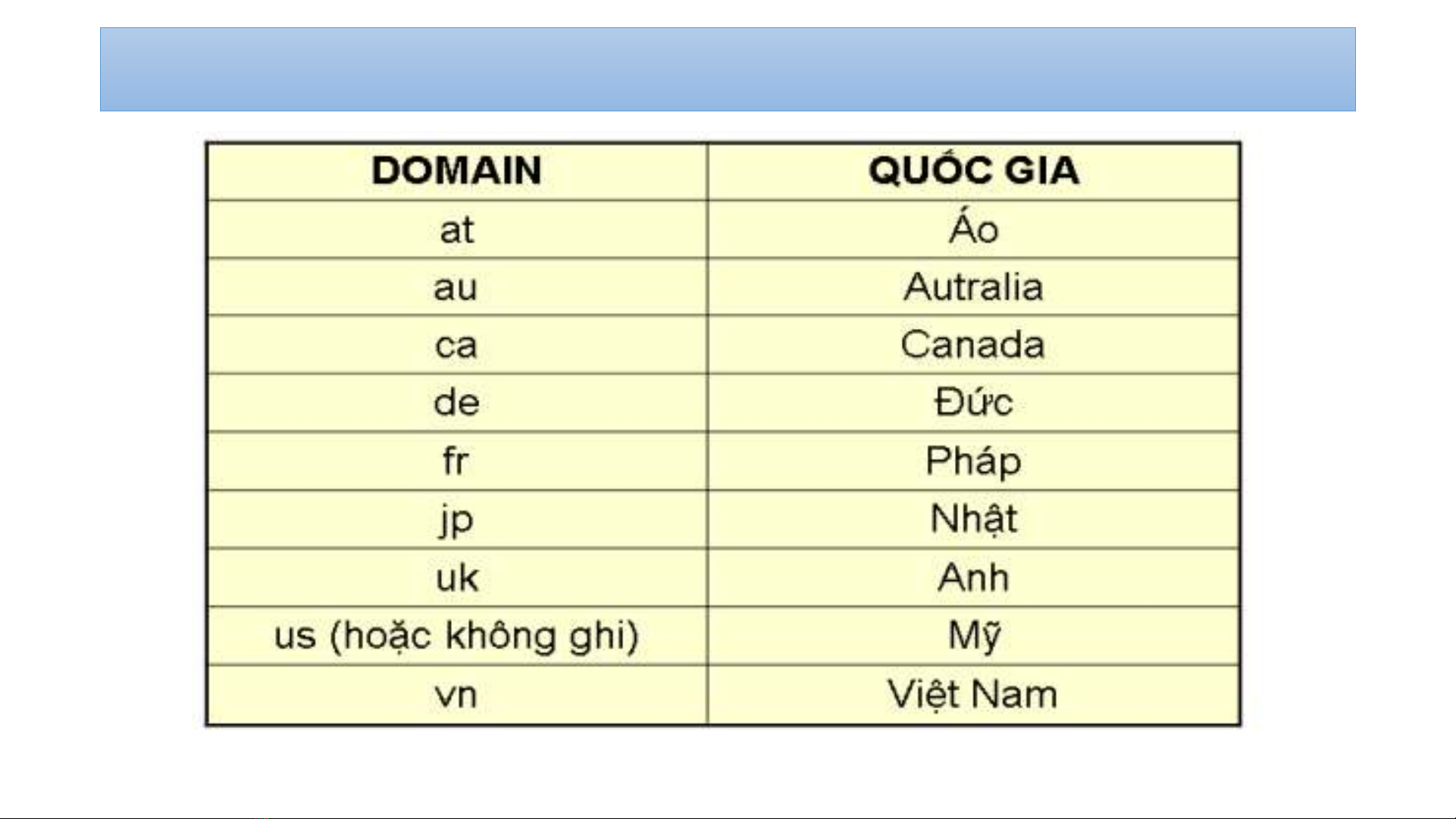 gồm 2chữ cái, qui định cho nước tham gia Internet.