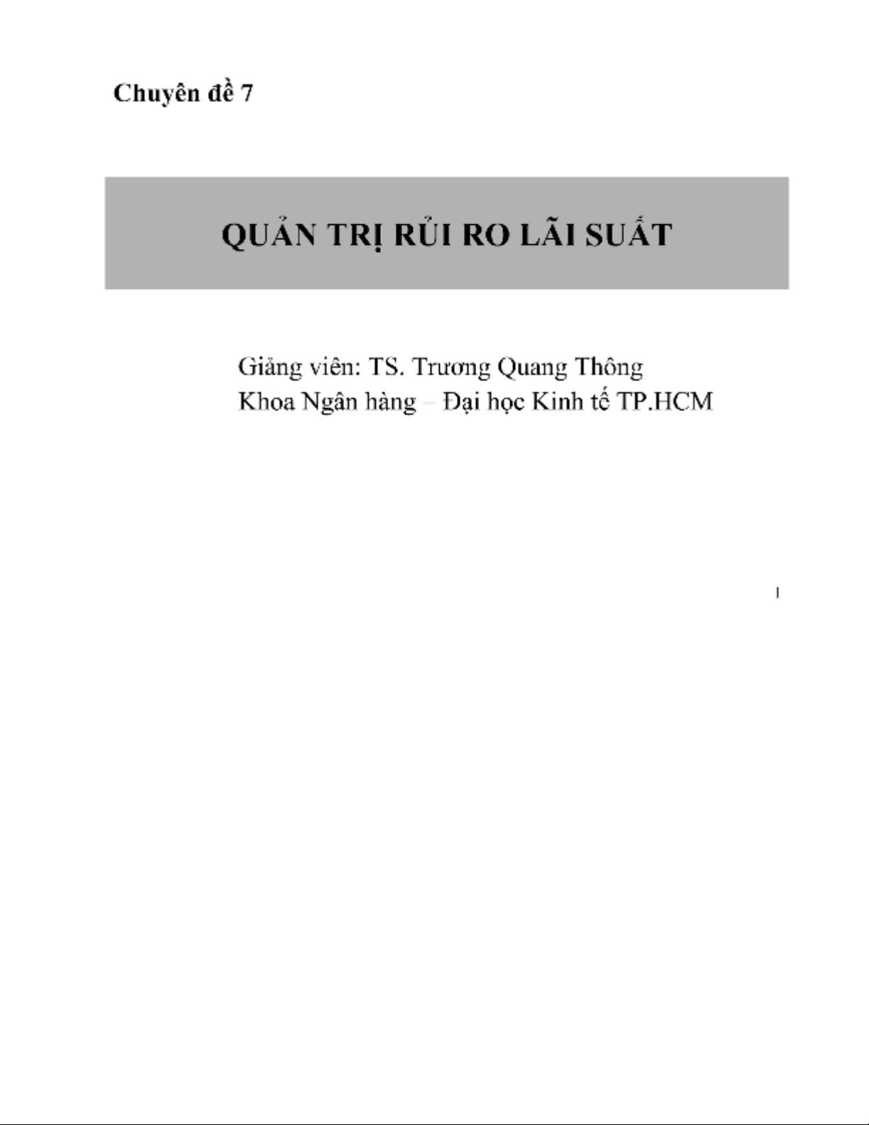 Bài giảng về Quản trị rủi ro lãi suất - TS Trương Quang Thông