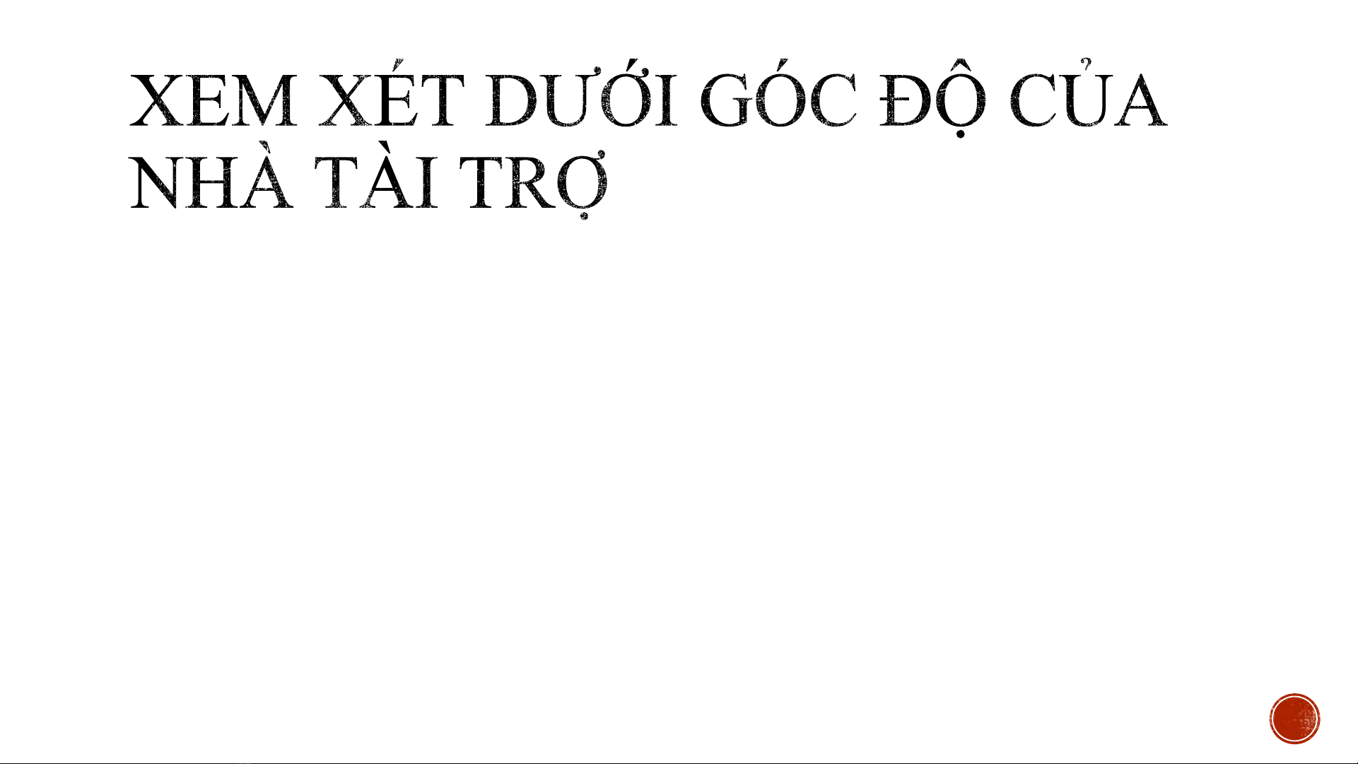 •Nhà tài trợ quan tâm đến các khía cạnh nào?