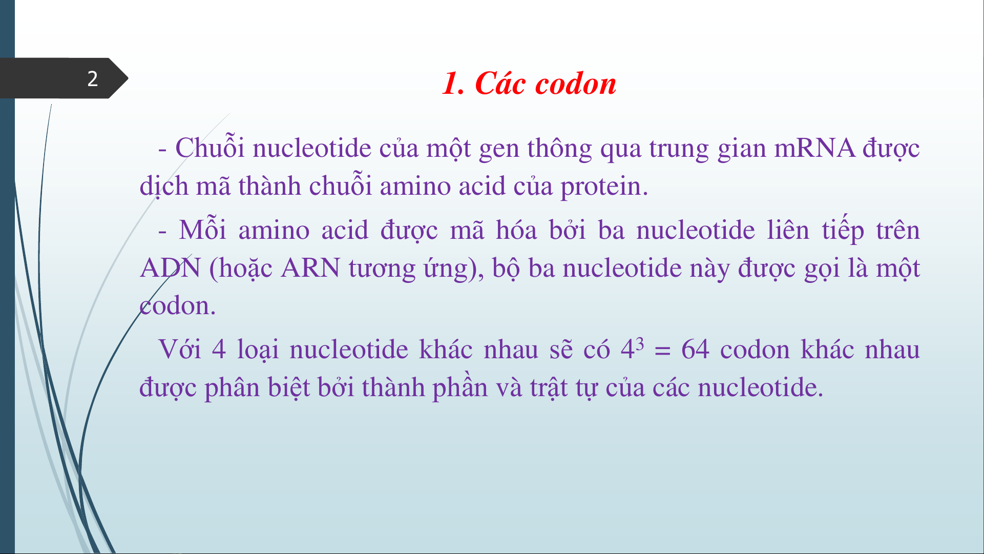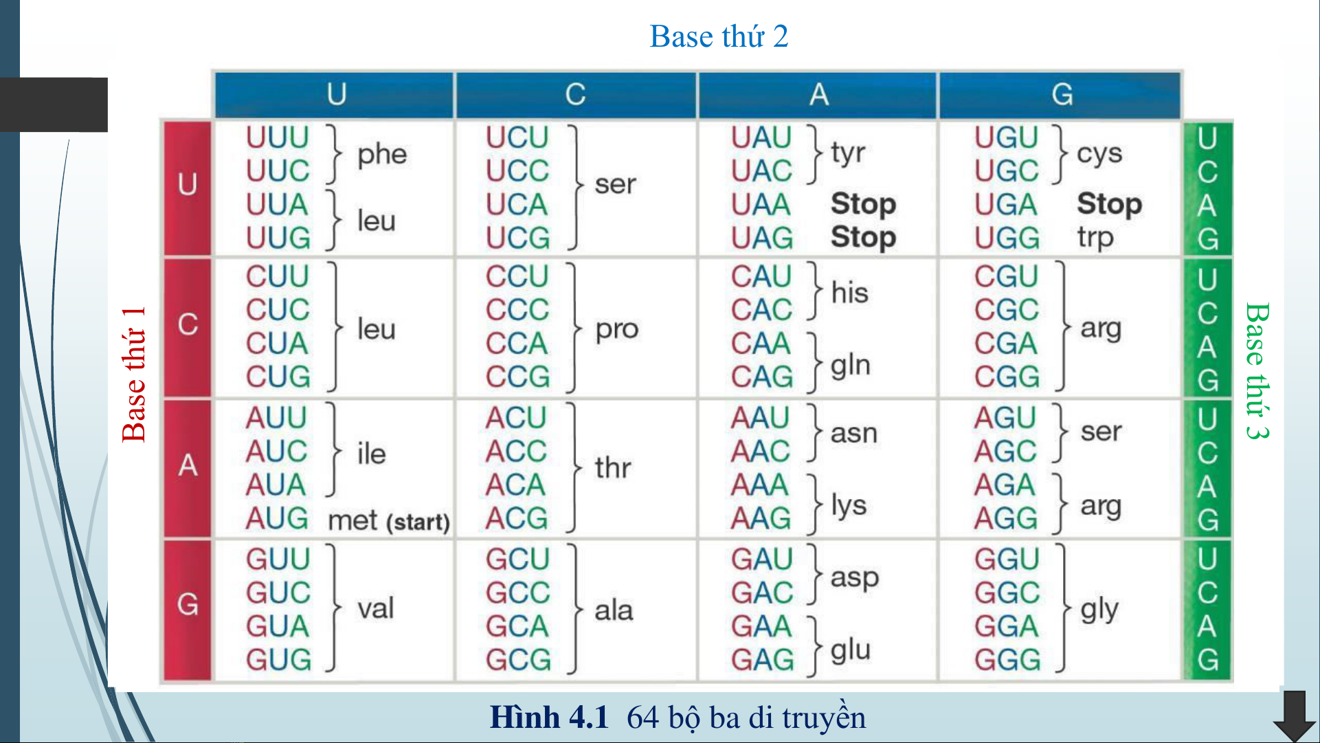 - Trong 61 mã còn lại có nhiều codon cùng mã hóa cho một