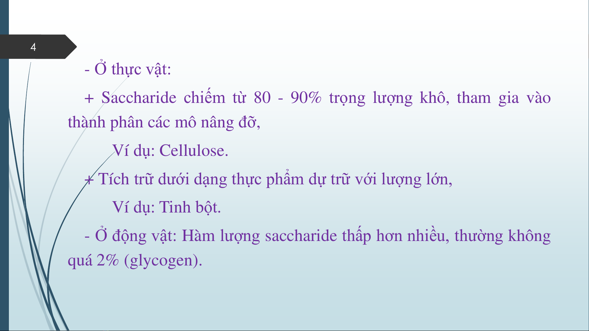 -Ởđộng vật: Hàm lượng saccharide thấp hơn nhiều, thường không