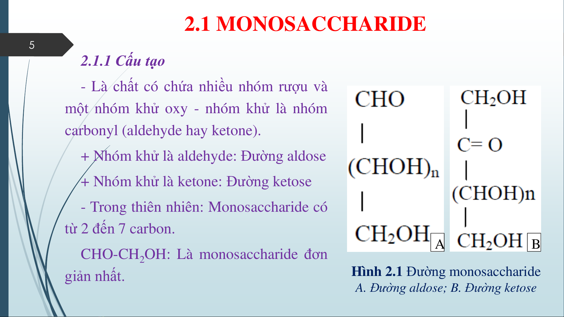 - Carbohydrate có công thức cấu tạo chung Cm(H2O)n(thường m = n).