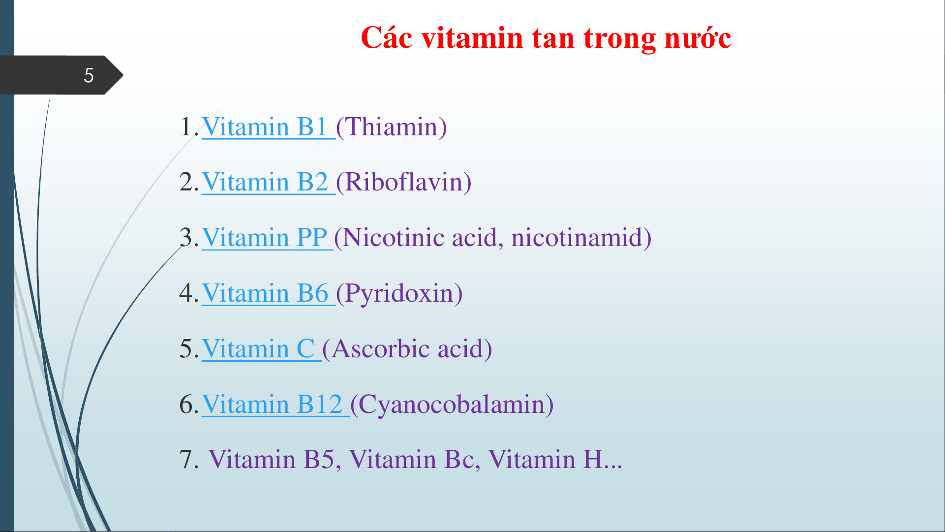 +Vitamin tan trong nước: Tham gia vào các quá trình liên quan tới