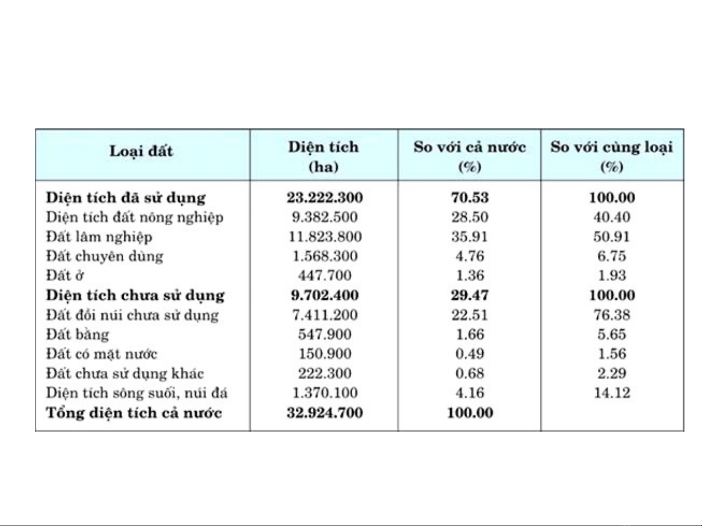 B ng 1. Hi n tr ng s d ng đ t năm 2001ả ệ ạ ử ụ ấ