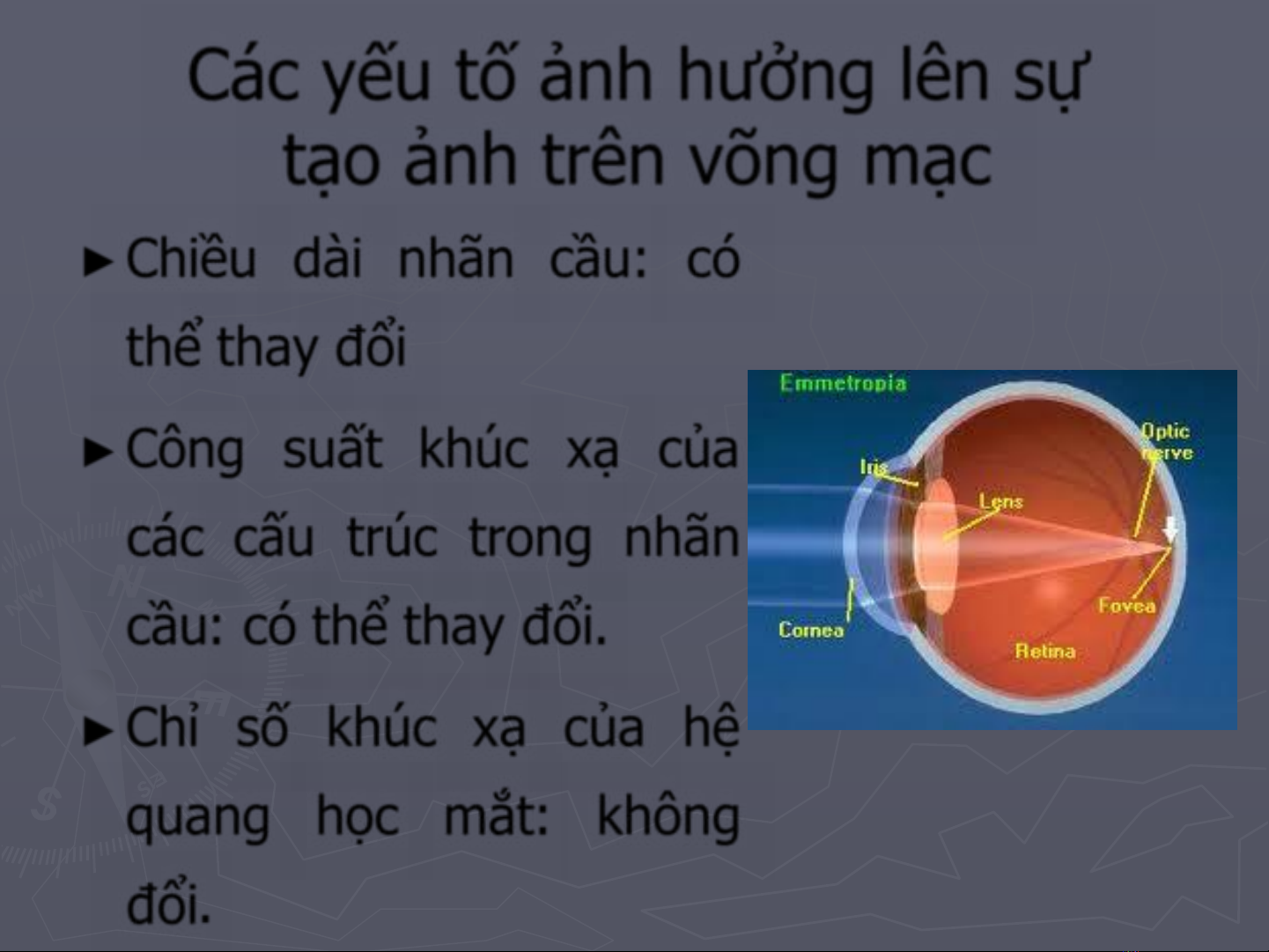 ►Mắt chính thị: hài hòa về t lệ giữa chiều dài