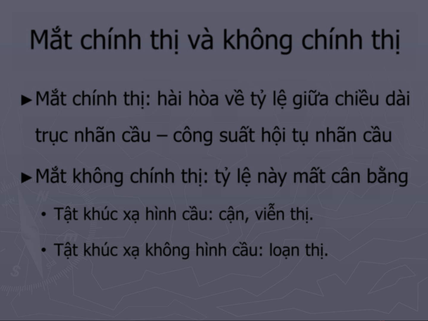 •Tật khúc xạ hình cầu: cận, viễn thị.