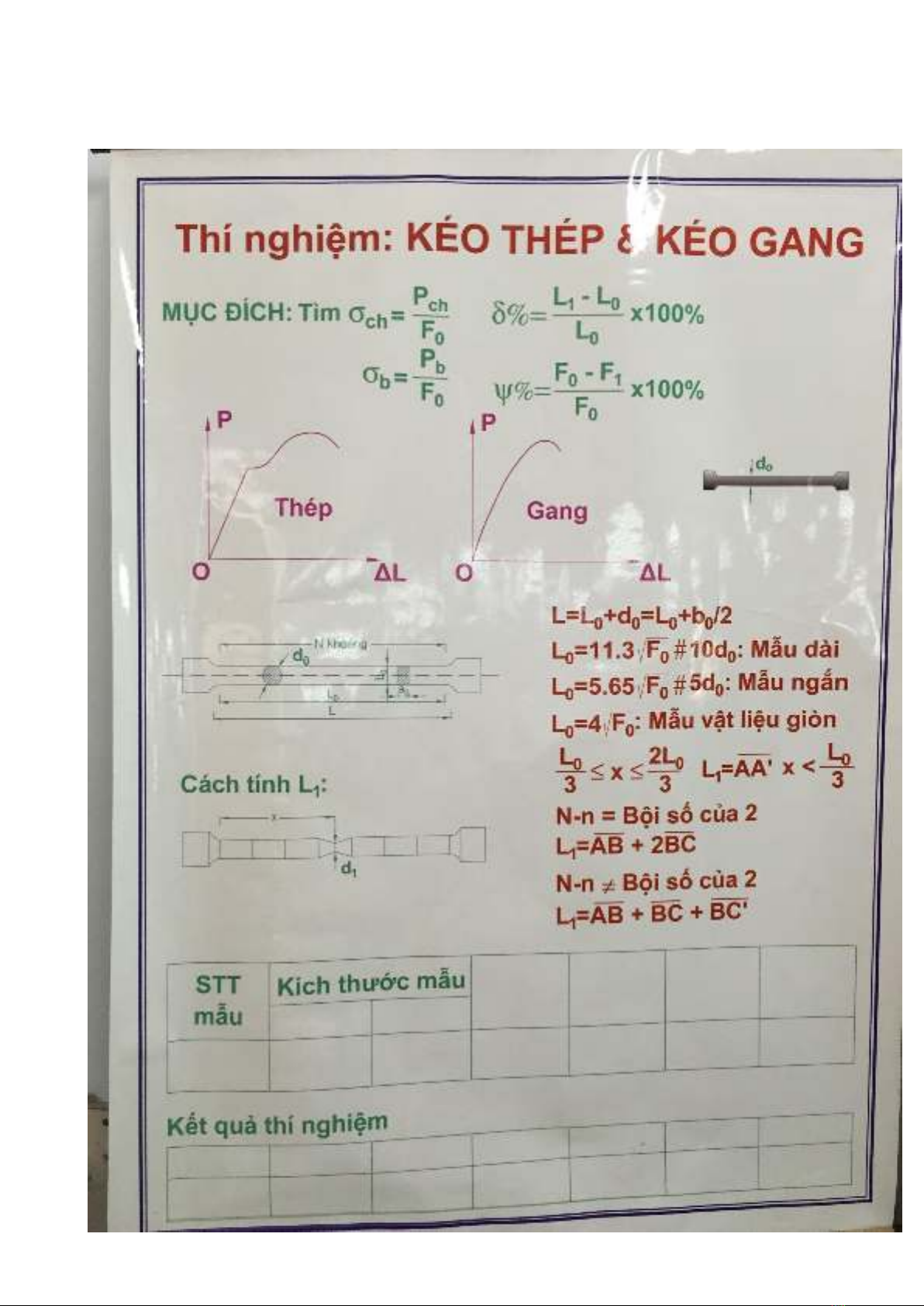 Tìm hiểu sự liên hệ giữa lực và biến dạng khi kéo mẫu thép và mẫu gang , và xác định