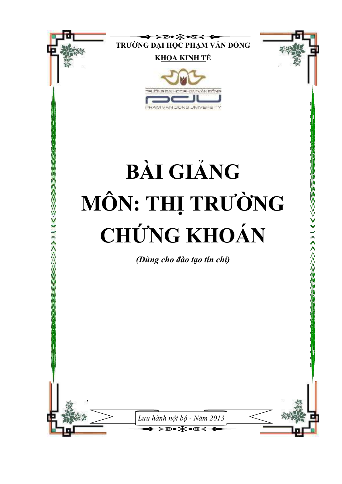 Chơng này sẽ trình bày v bn chất, chức năng ca thị trng chứng khoán,