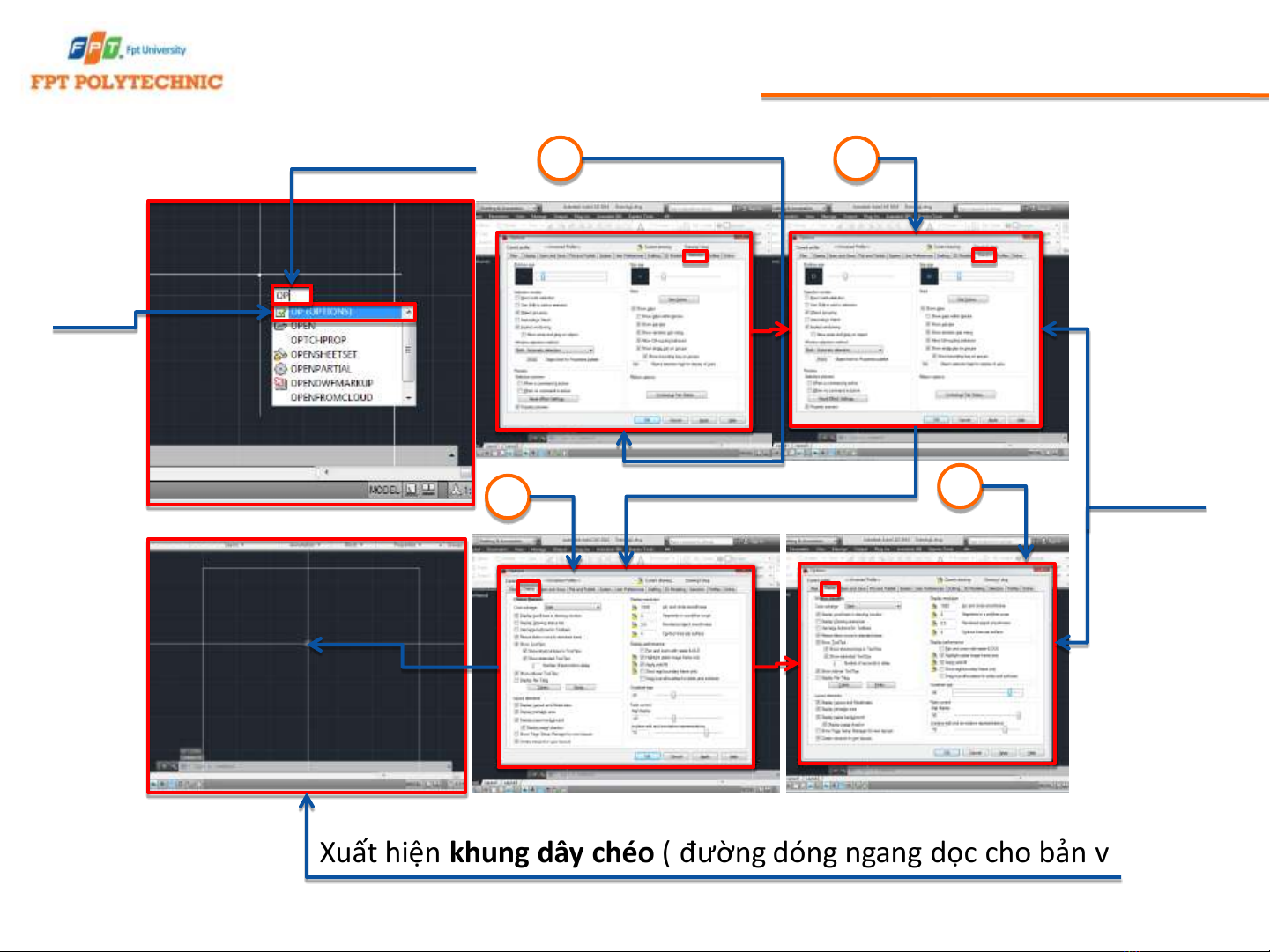 Xuất hiện khung dây chéo ( đường dóng ngang dọc cho bản vẽ)