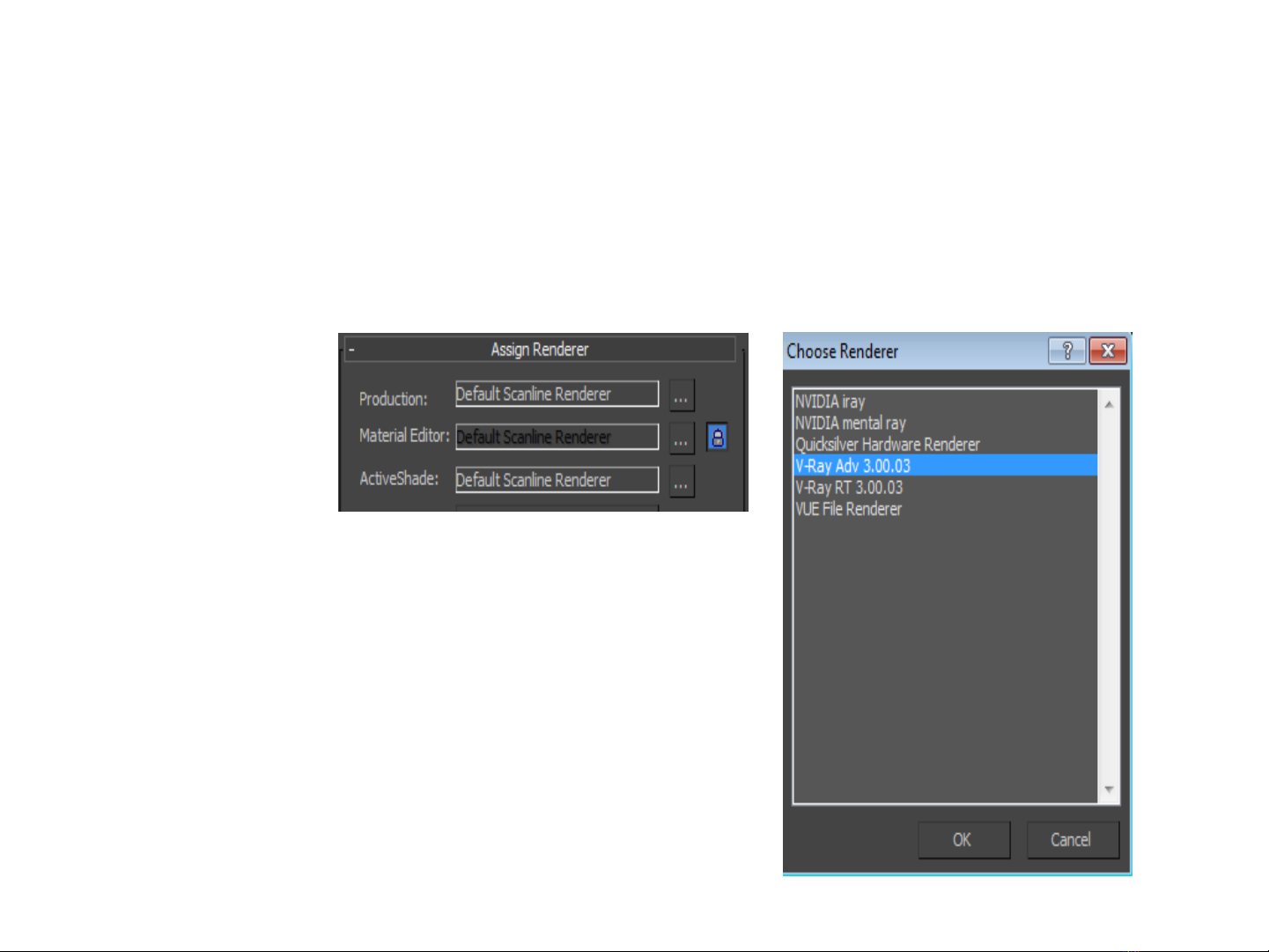 -Gán trình render Vray: Lựa chọn trình render Vray Adv.3.00