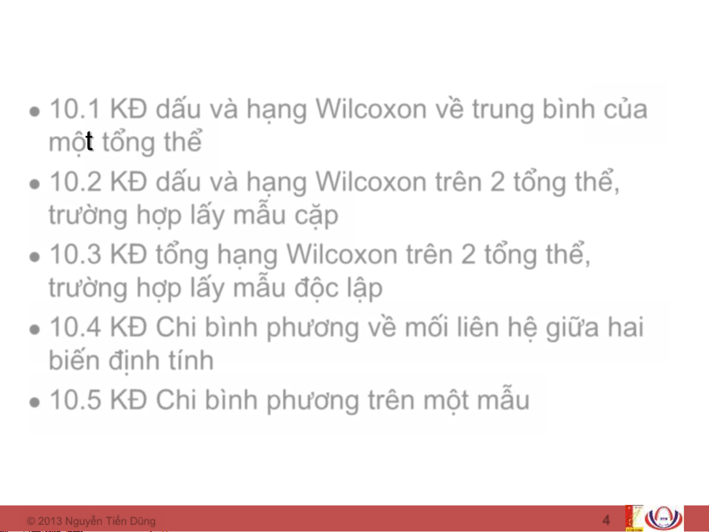 ●10.1 KĐ dấu và hạng Wilcoxon về trung bình của