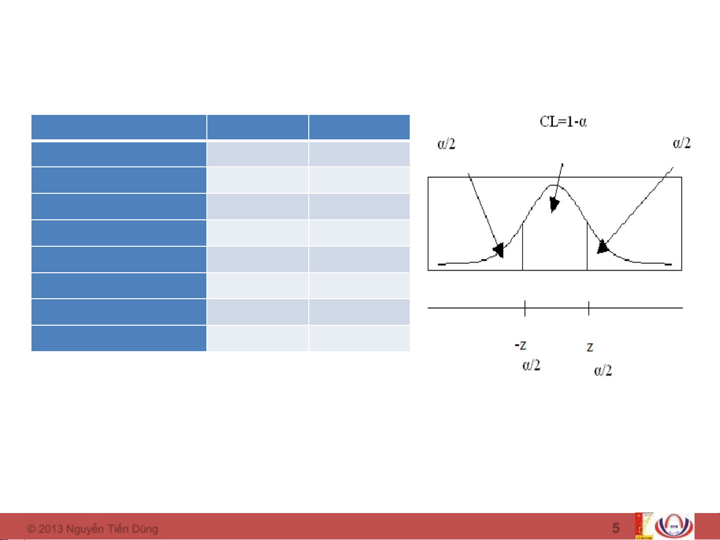 ●Độ tin cậy là CL.100% hoặc (1-α).100%