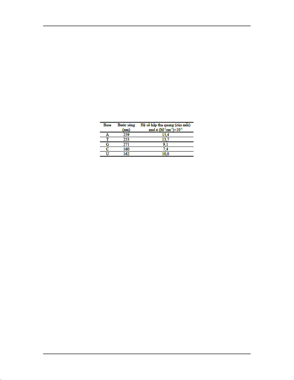 chỉnh nồng độ chính xác. Các nucleotide có bước sóng hấp thụ cực đại như bảng