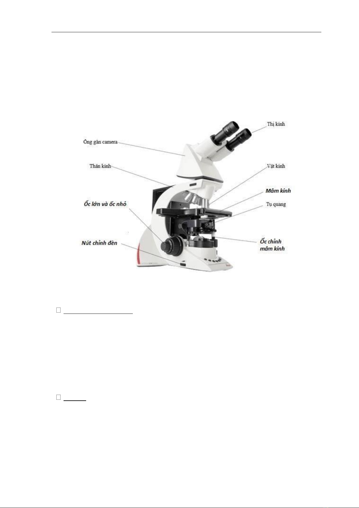 Hình 1: Cấu tạo kính hiển vi