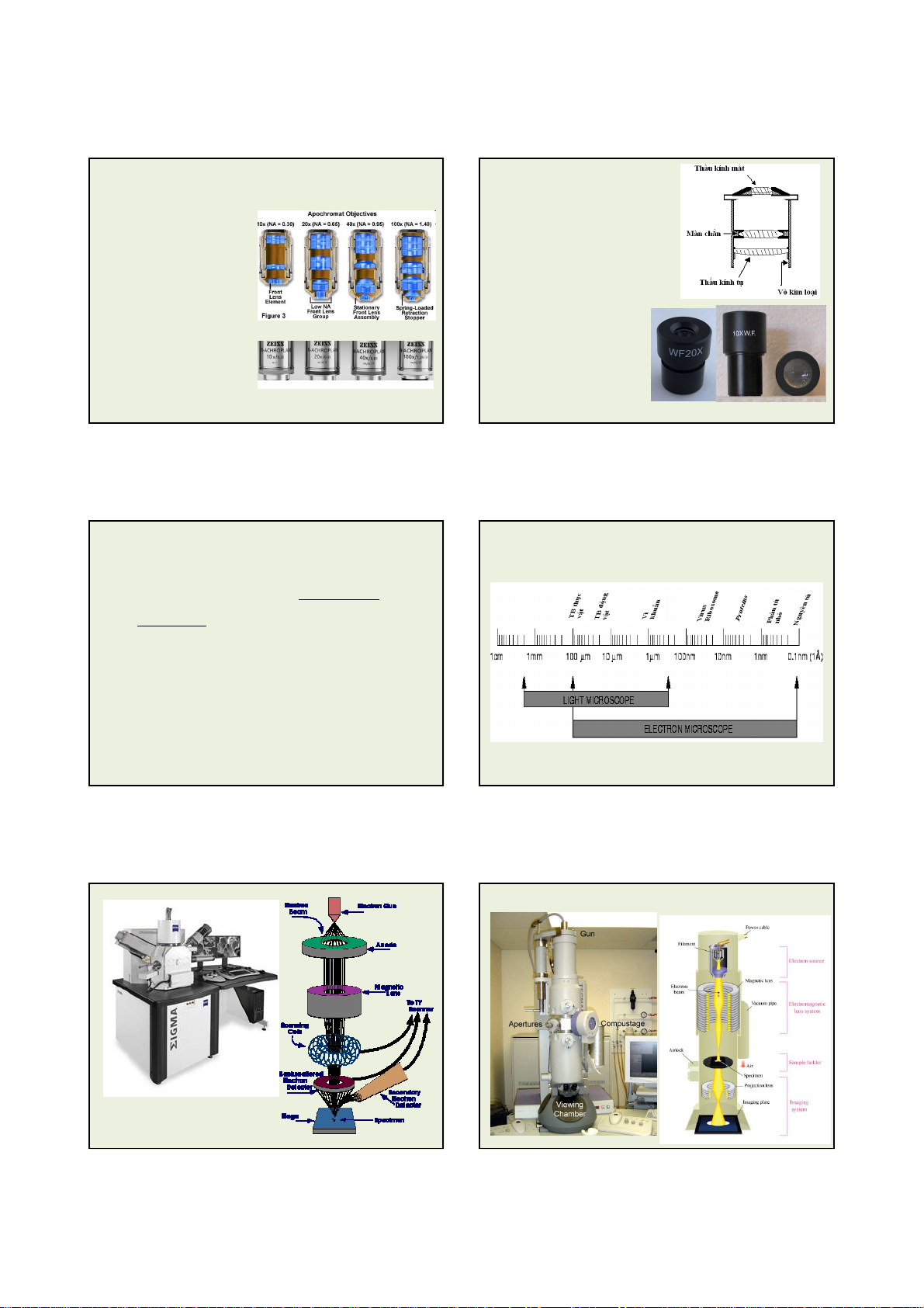- Các vật kính: 8x, 10x, 40x, 60x