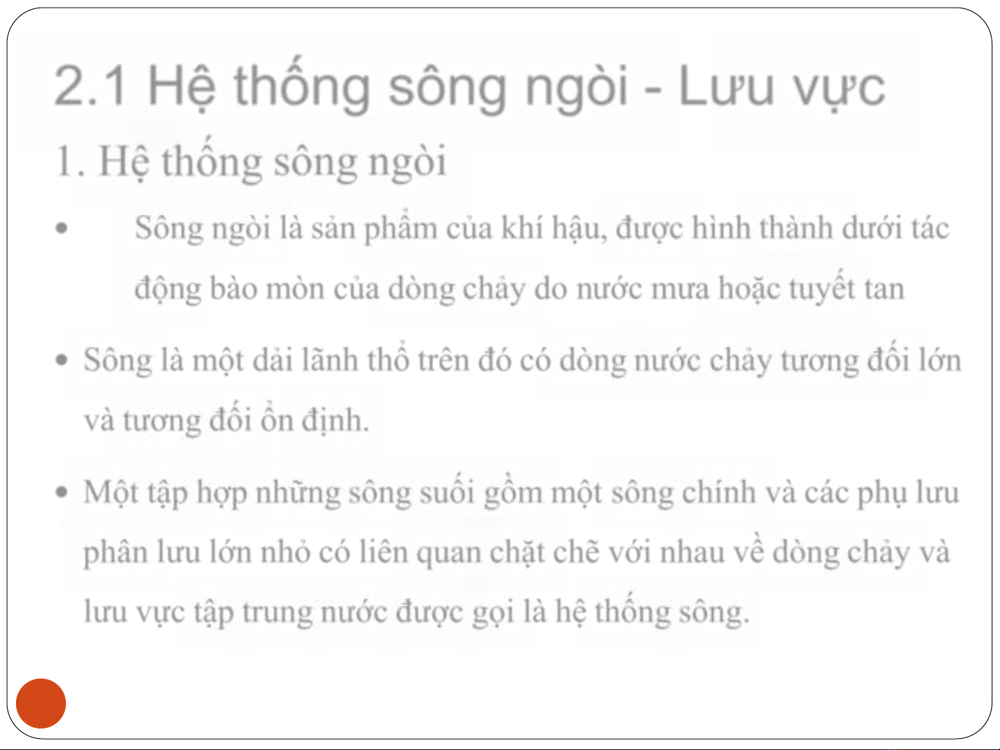 Sông là một dải lãnh thổ trên đó có dòng nước chảy tương đối lớn