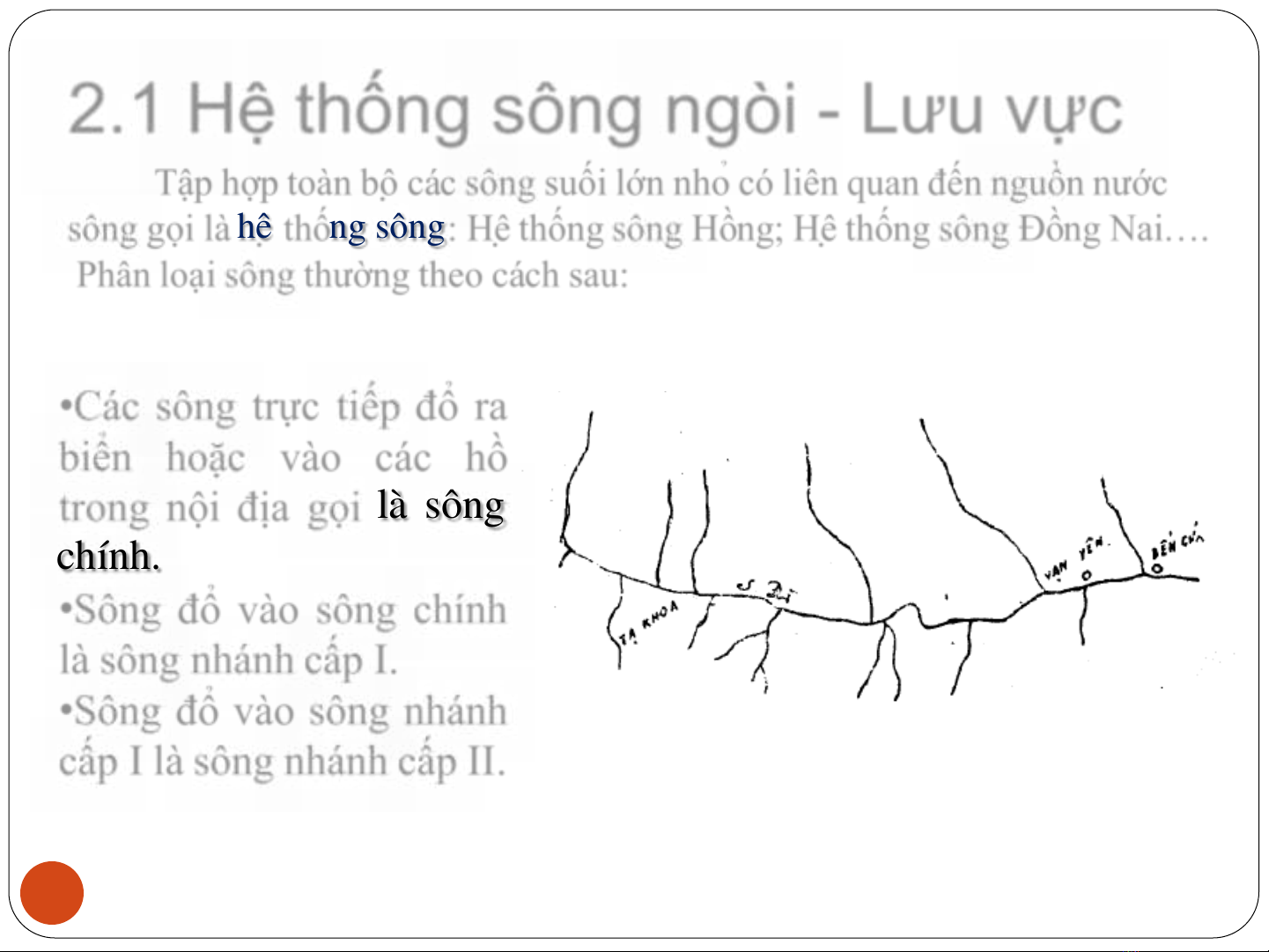 sông gọi l hê thống sông: Hê thống sông Hồng; Hê thống sông Đồng Nai….