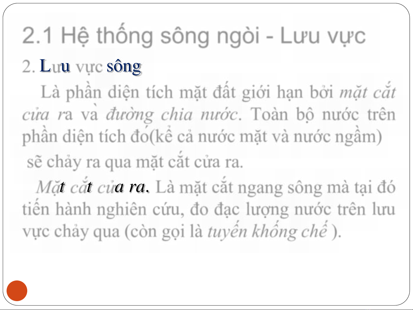 Mt ct ca ra. L mặt ct ngang sông mà tại đó