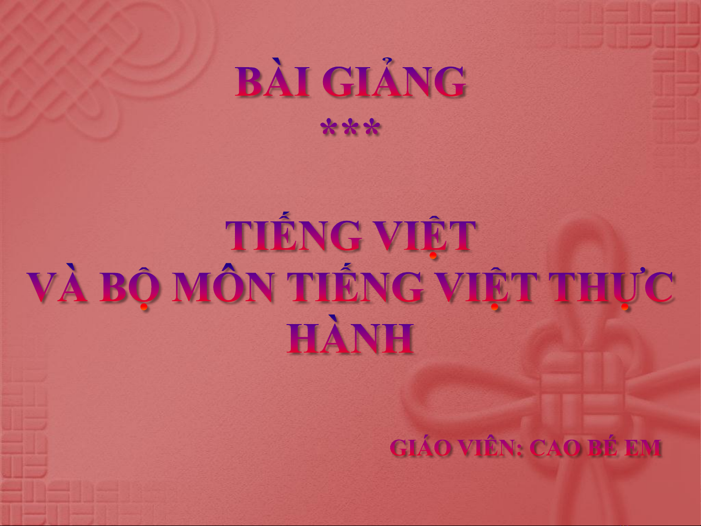 I. KHÁI QUÁT VỀ TIẾNG VIỆT