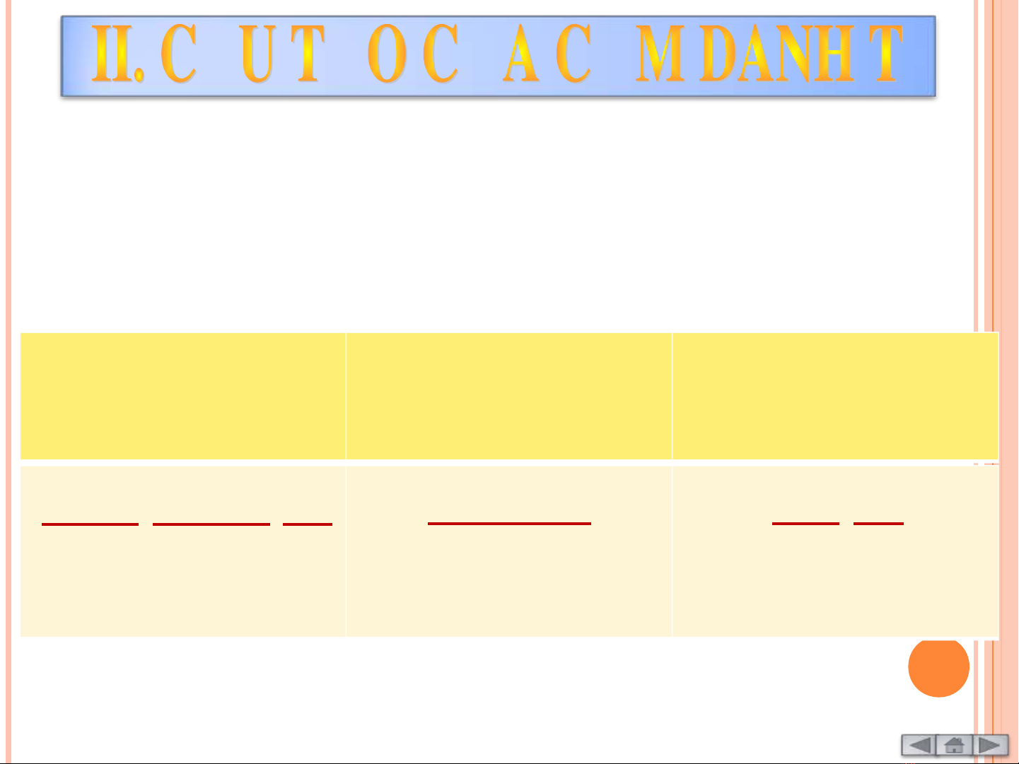II. C U T O C A C M DANH Ấ Ạ Ủ Ụ