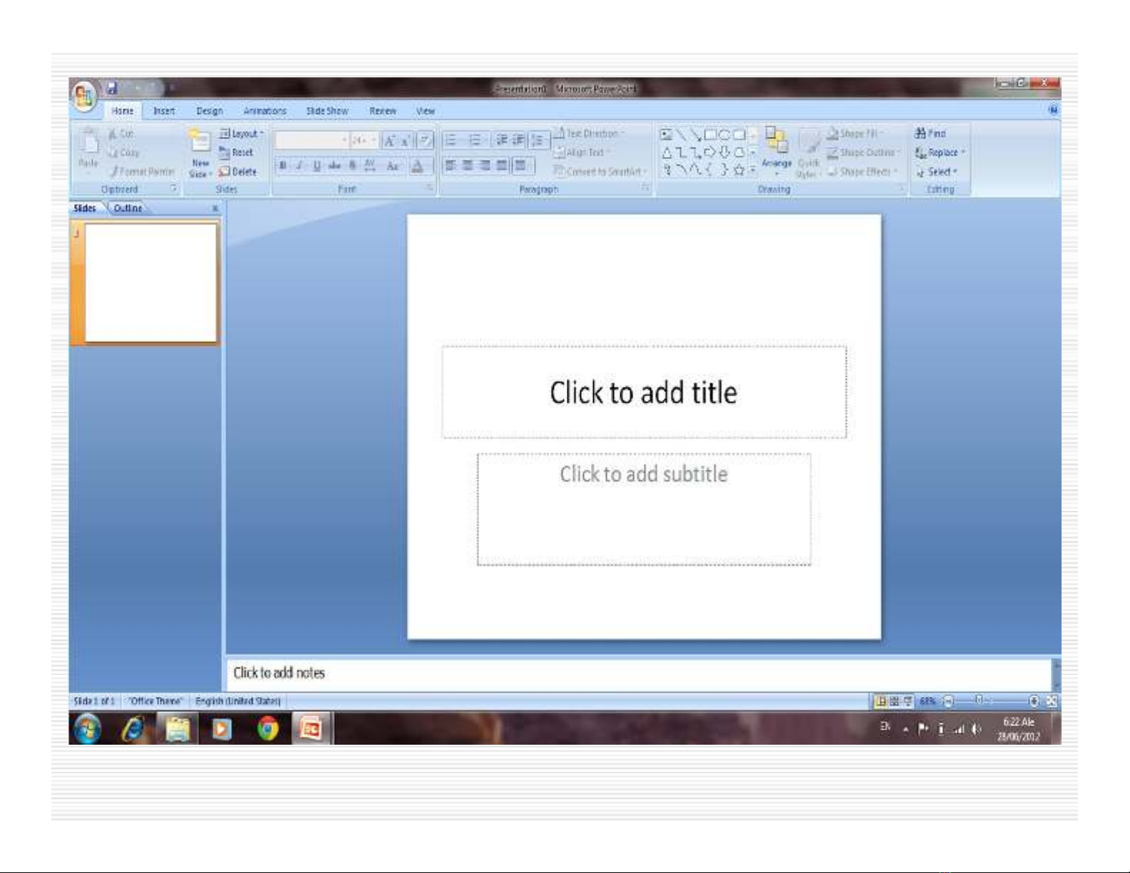 Giao diện Power Point có dạng như hình sau.