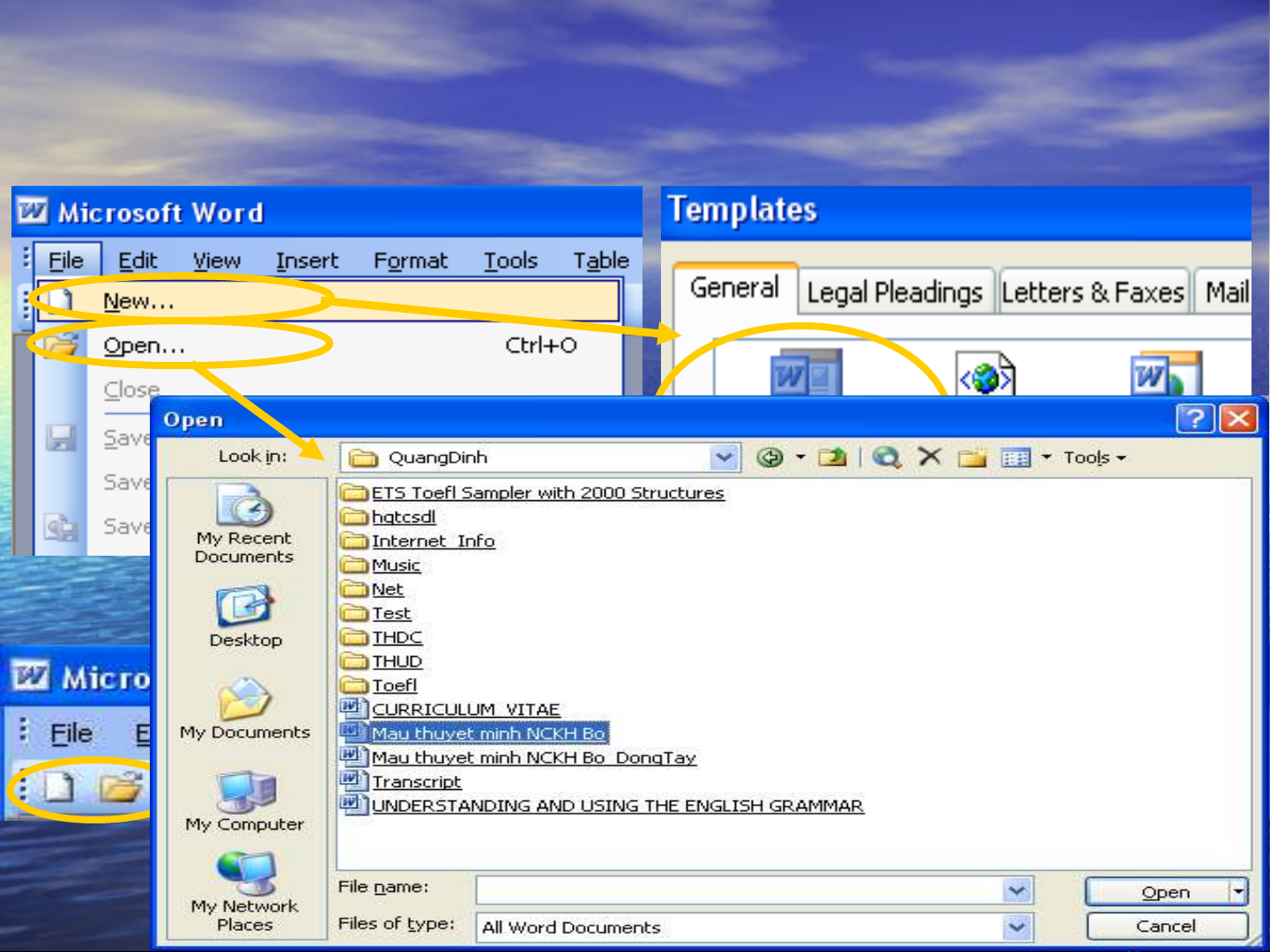 T o trang văn b n – ạ ả File/New ho c Openặ