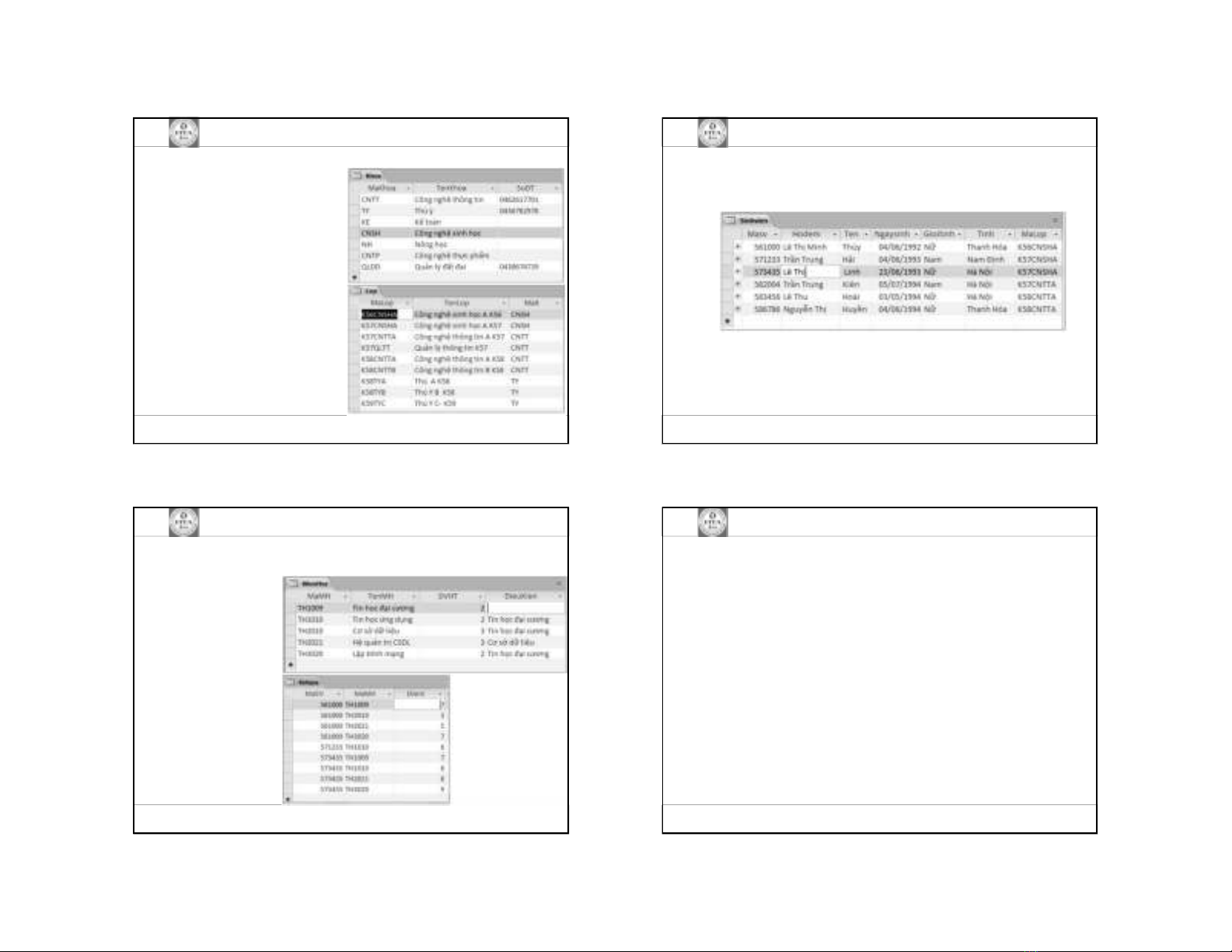 •Dữ liệu trong CSDL quan hệ được tổ chức thành các