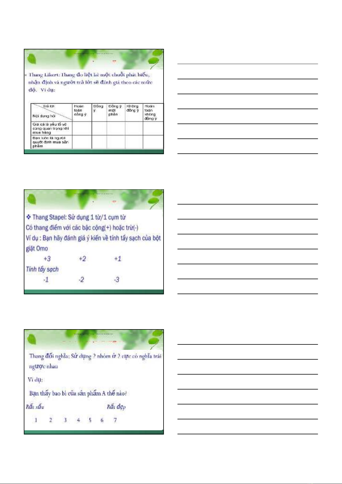 các bảng câu hỏi khảo sát như là: thang đo danh