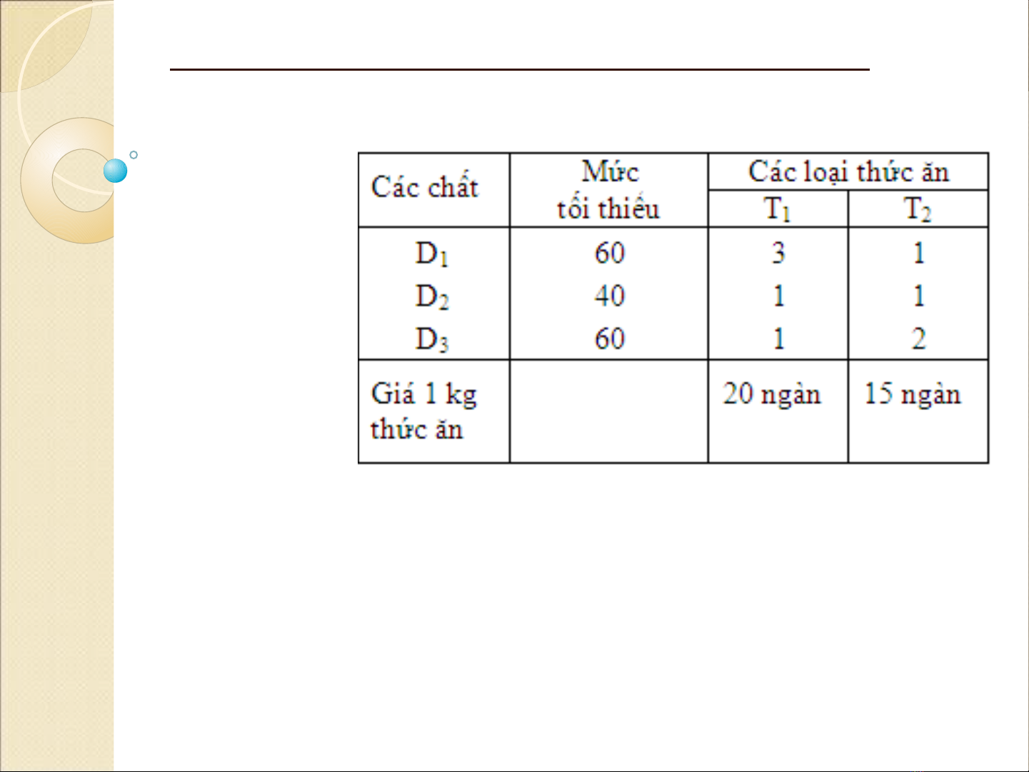 Mô hi nh toa n hoc. Goi x1, x2 lân l t la sô kg ươ