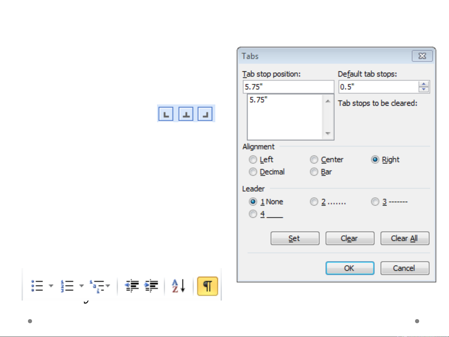 •Left indent: canh l trái c a các dòng trong ề ủ