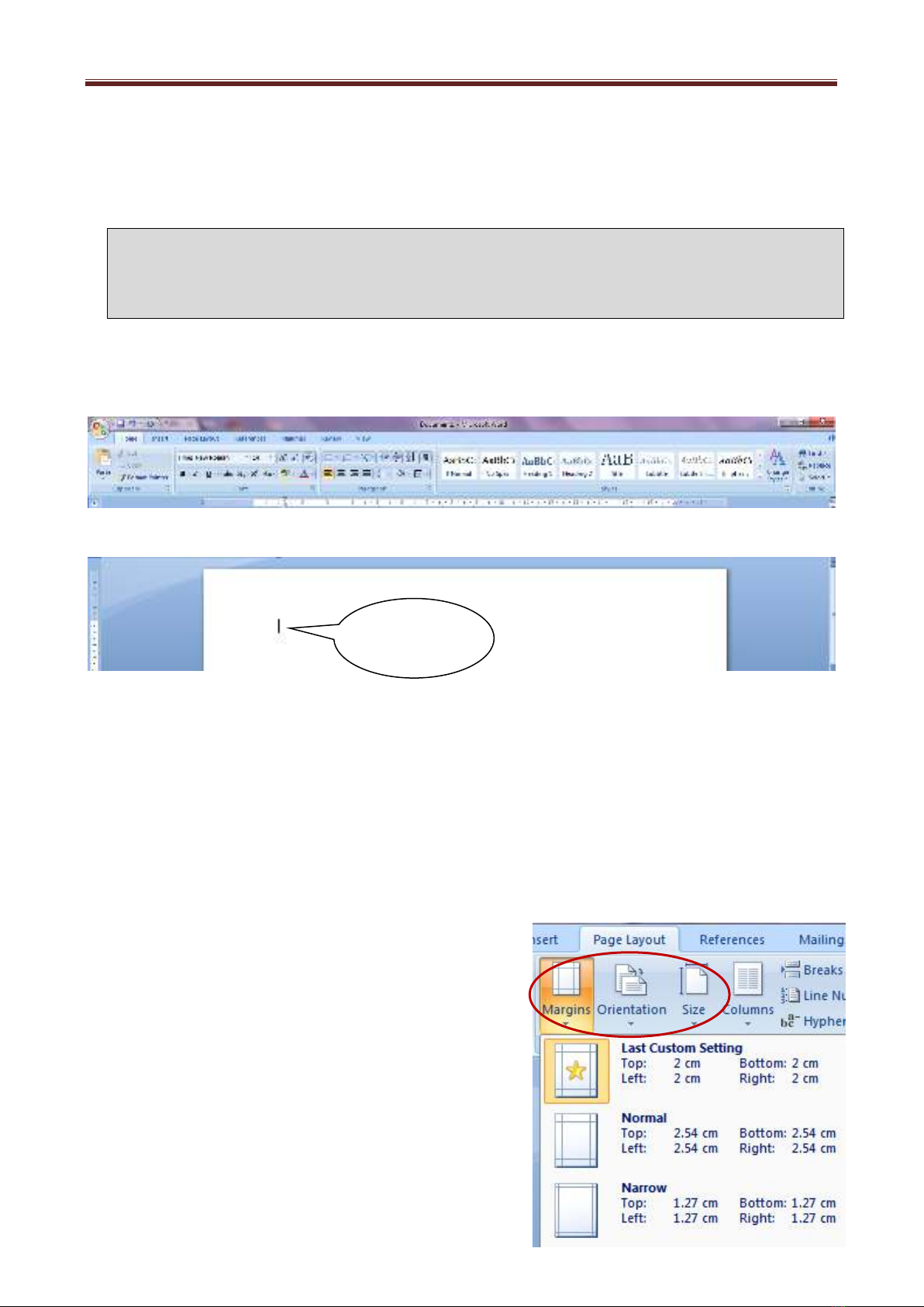 các Margin (canh lề). Văn bản khi gõ sẽ được lấp đầy từ trái qua phải và từ trên