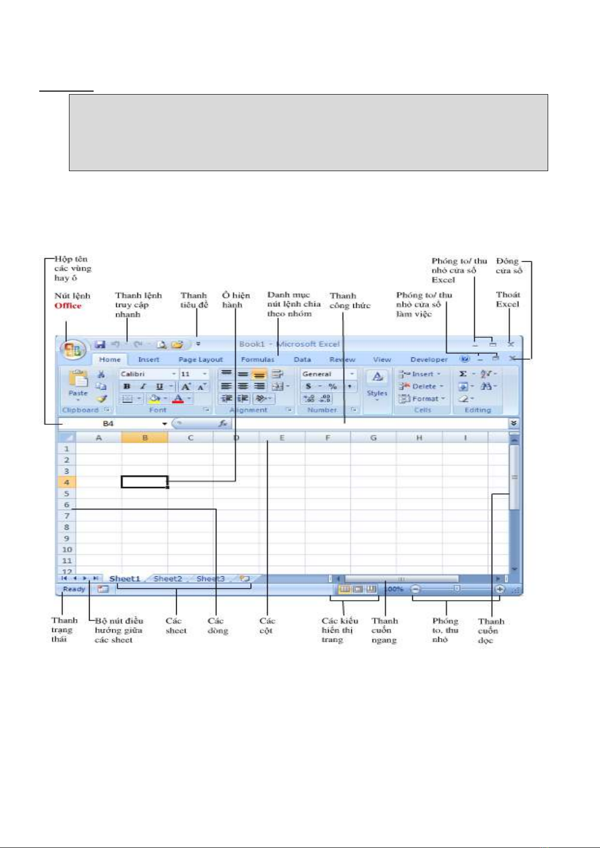 Data, Review và View. Mỗi tab được chia thành các nhóm. Mỗi nhóm là tập hợp các
