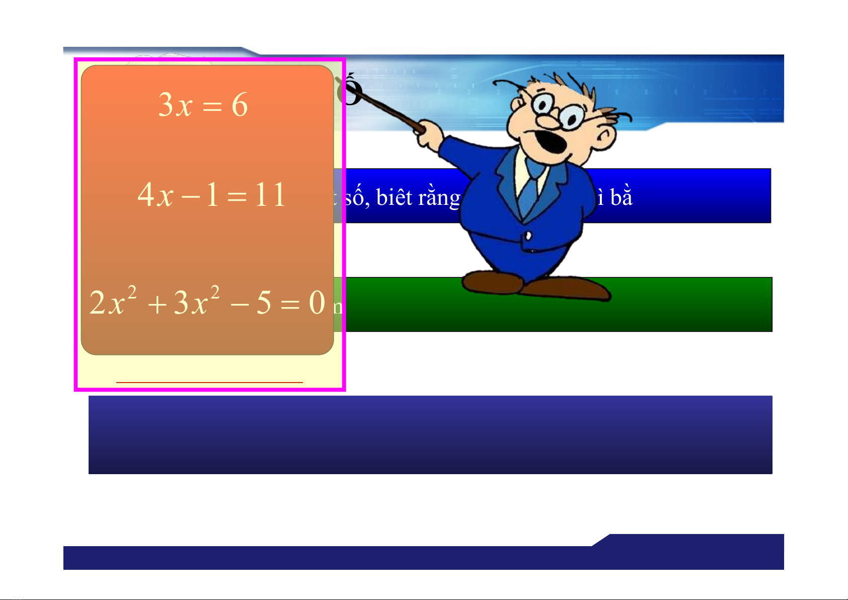 Phương trình ẩn x là mệnh đề chứa biến có dạng: