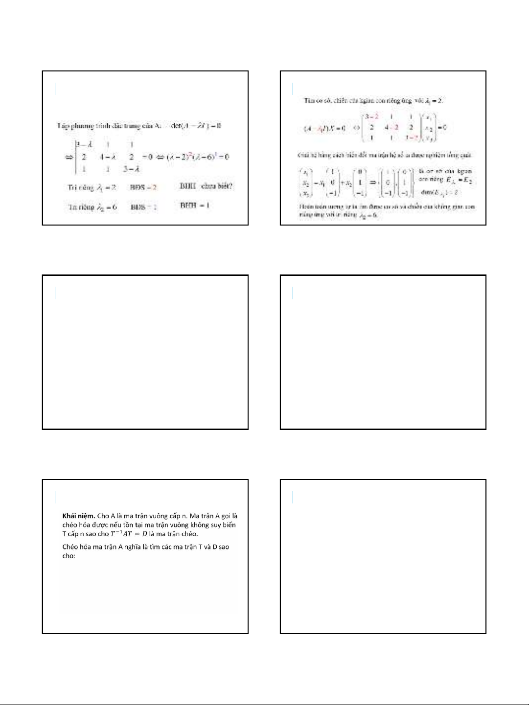 -Nếu A có đủ n véc tơ riêng độc lập tuyến tính thì A chéo