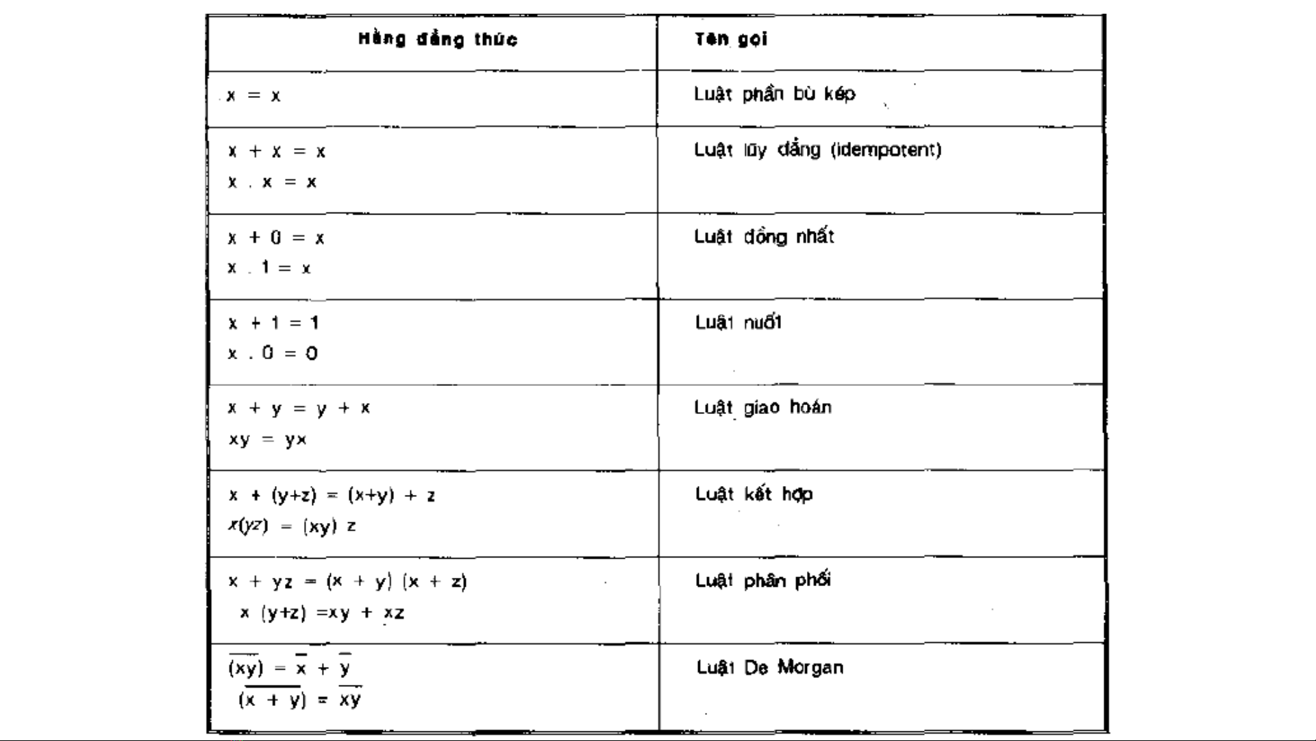 •0, 1, x1, x2,…,xnlà biểu thức Boole;